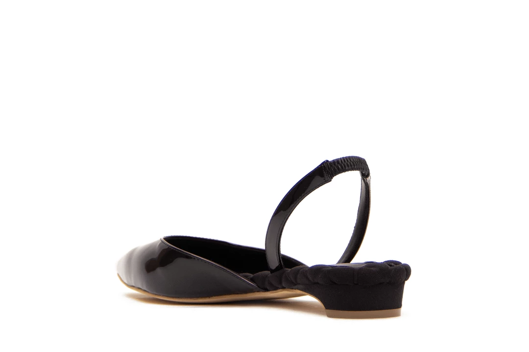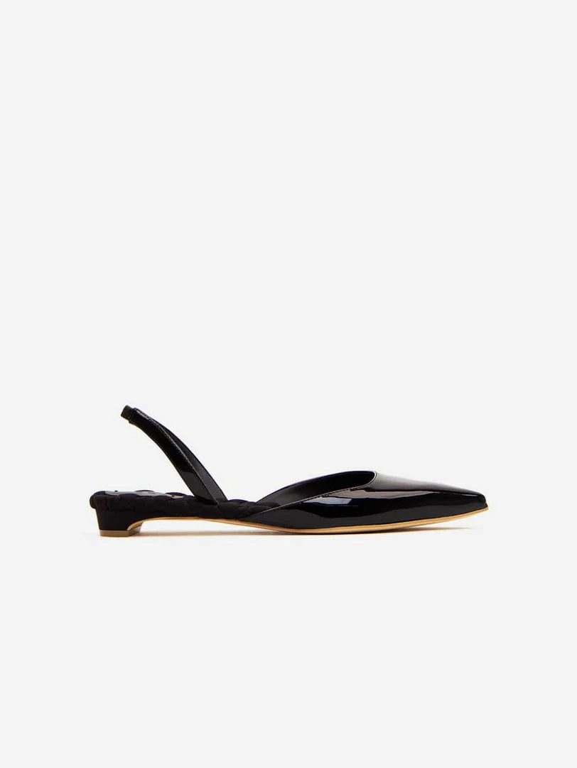 The new version of AERA’s best-selling pointed-toe flat silhouette, the Jackie slingbacks are the perfect option to take you from day to evening with elegance and comfort. Their signature cushioned insole ensures a more comfortable fit and a unique silhouette. Offered in a vegan and 110% sustainable Patent-Effect.