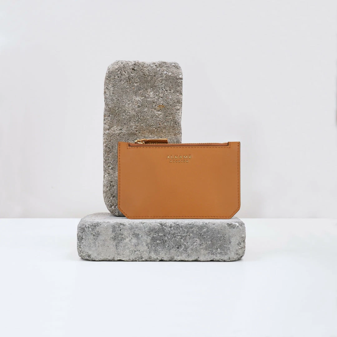 Material: Made in an innovative Vegan Leather, exclusive to ALKEME ATELIER. The material is lightweight, scratch resistant and high in strength. They produce this card case in a factory that is ISO 9001 certified.