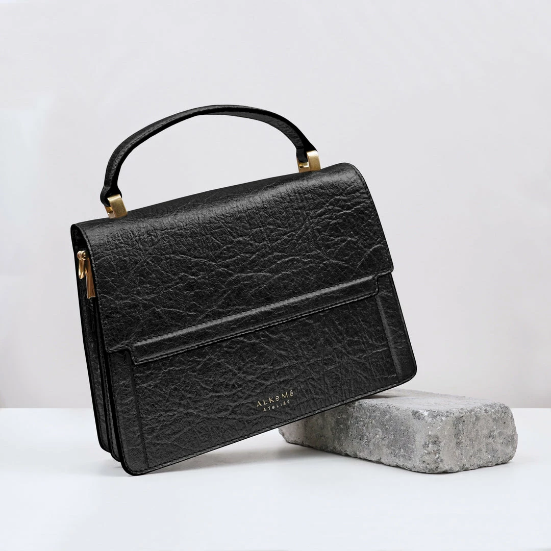 Alkeme Atelier takes this waste and transform it into a brand new material, a fabric used as the linings of their handbags. They hope taking these conscious steps will aid in the mission to protect the planet and cultivate an ethical and sustainable fashion. Alkeme Atelier are constantly innovating for sustainable materials.