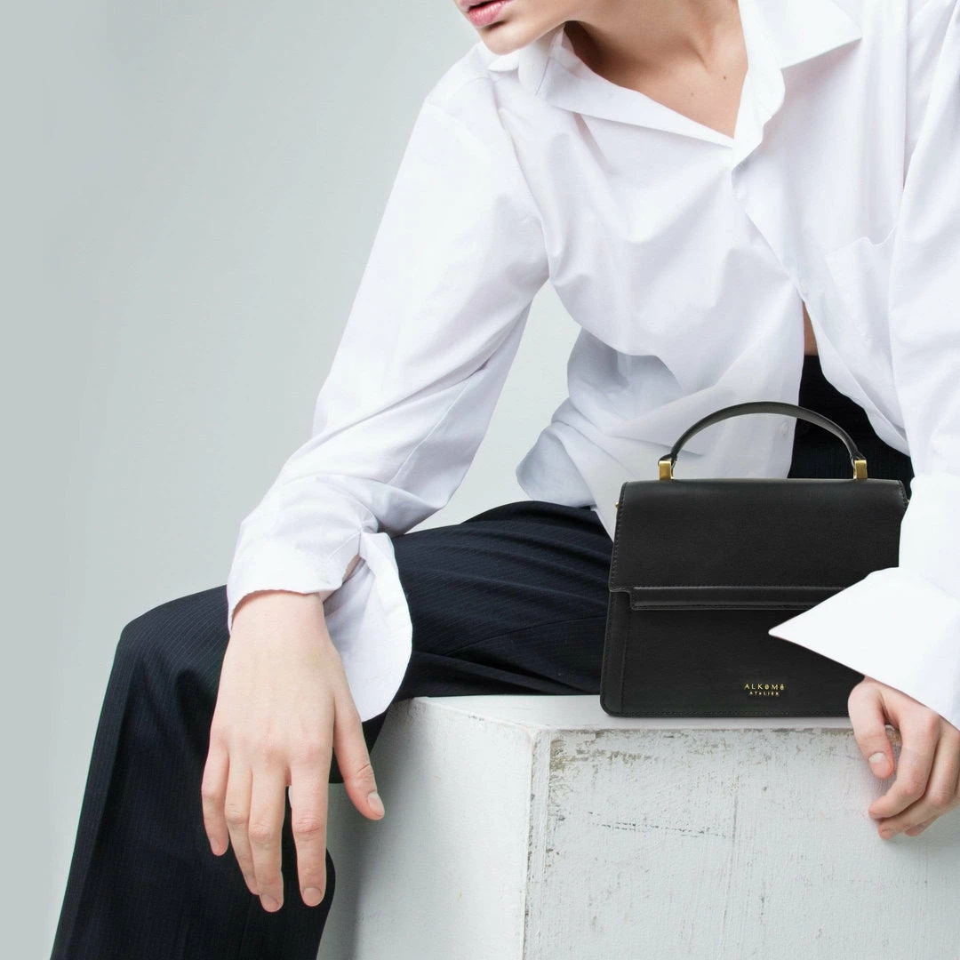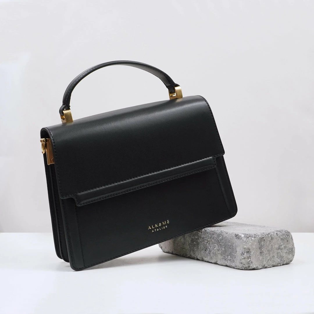 Material: Made in an innovative Vegan Leather, exclusive to ALKEME ATELIER. The material is lightweight, scratch resistant and high in strength. They produce this bag in a factory that is ISO 9001 certified.