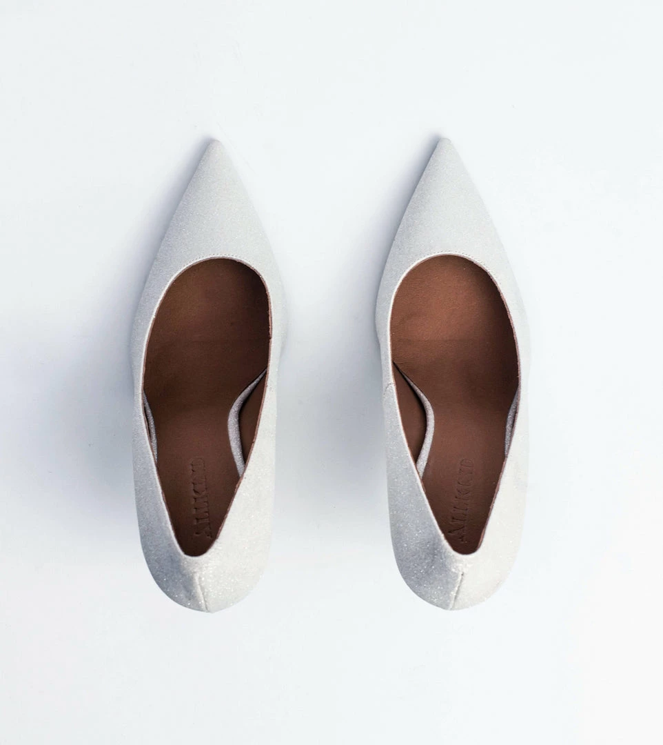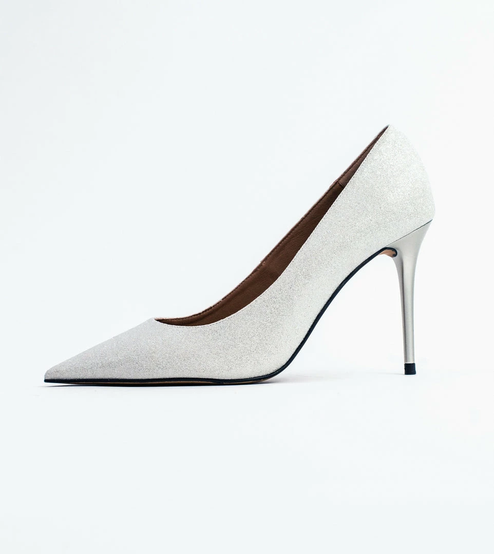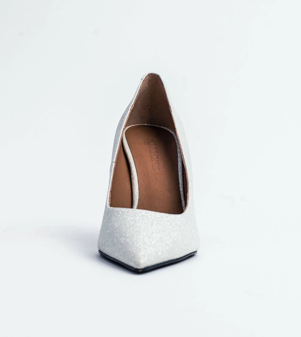 The sparkly Scarlett is a gorgeous party shoe with a slim stiletto 95mm heel and elegant silhouette. Hand stitched in Spain and adorned with glittery vegan leather, this stand out court is sexy and stylish. Perfect for a wedding or any glamorous occasion.