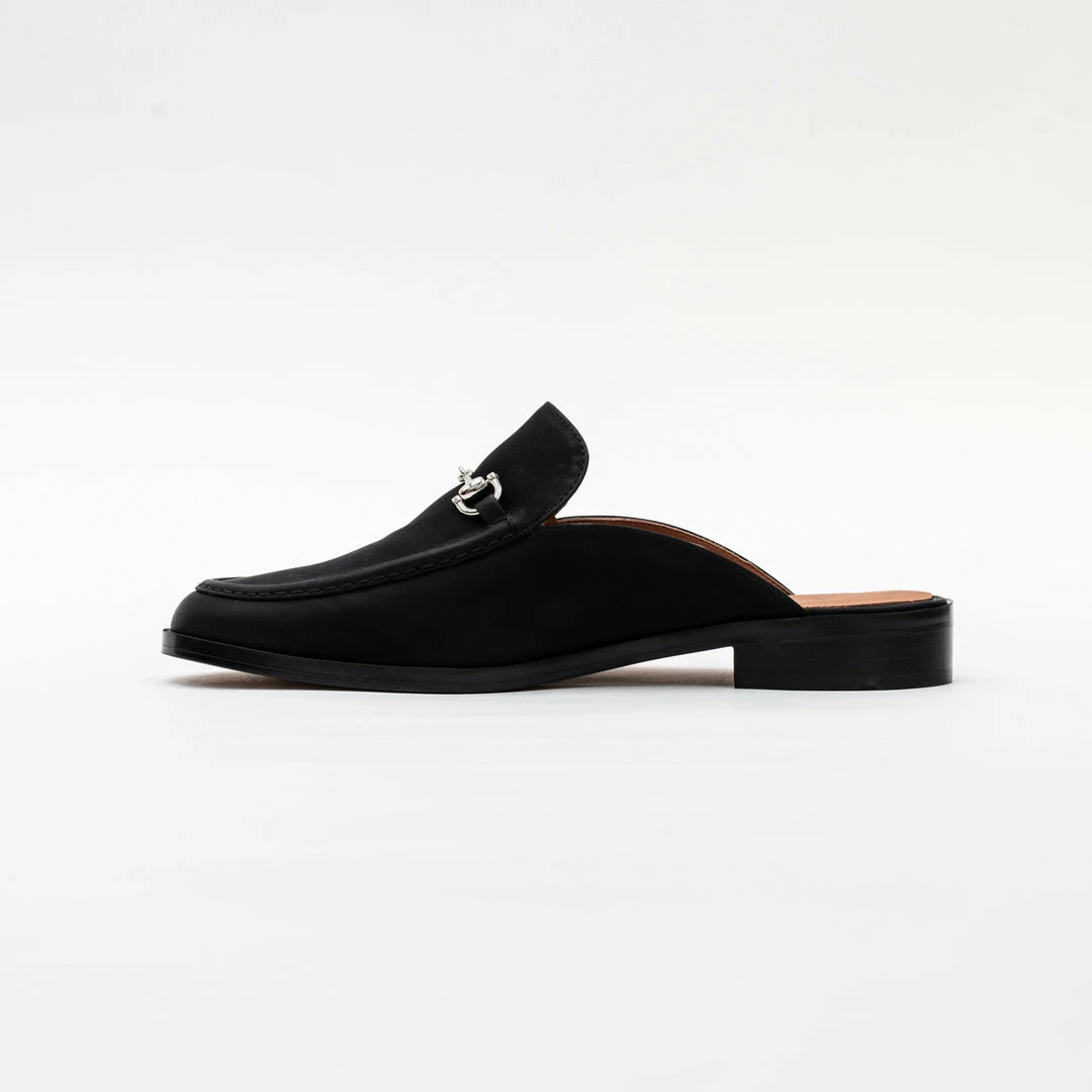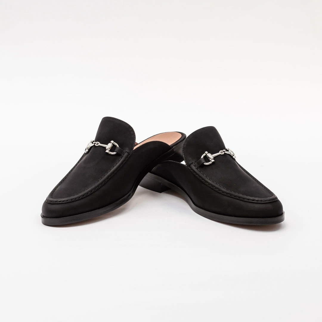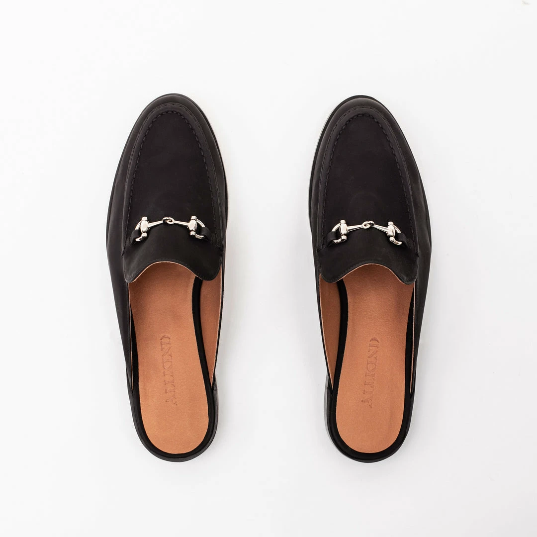 Adorned with a classic silver snaffle buckle, this easy-to-wear, relaxed shoe is perfect for the warmer months. The Elle is available in both timeless black and neutral stone and is beautifully made from soft vegan suede.