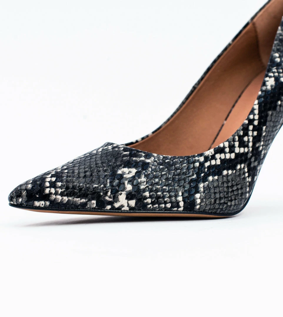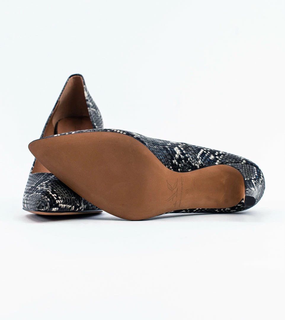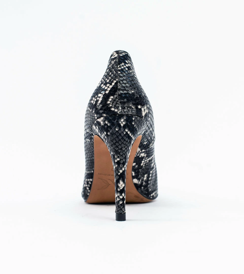 Meet Sophie, a classic court shoe. Sleek and sophisticated this elegant shoe can be dressed up or worn as an every day heel. Hand stitched in Spain and made from beautiful vegan snake skin effect leather with a 85mm stiletto heel, the Sophie is an essential shoe for every stylish vegan’s wardrobe.