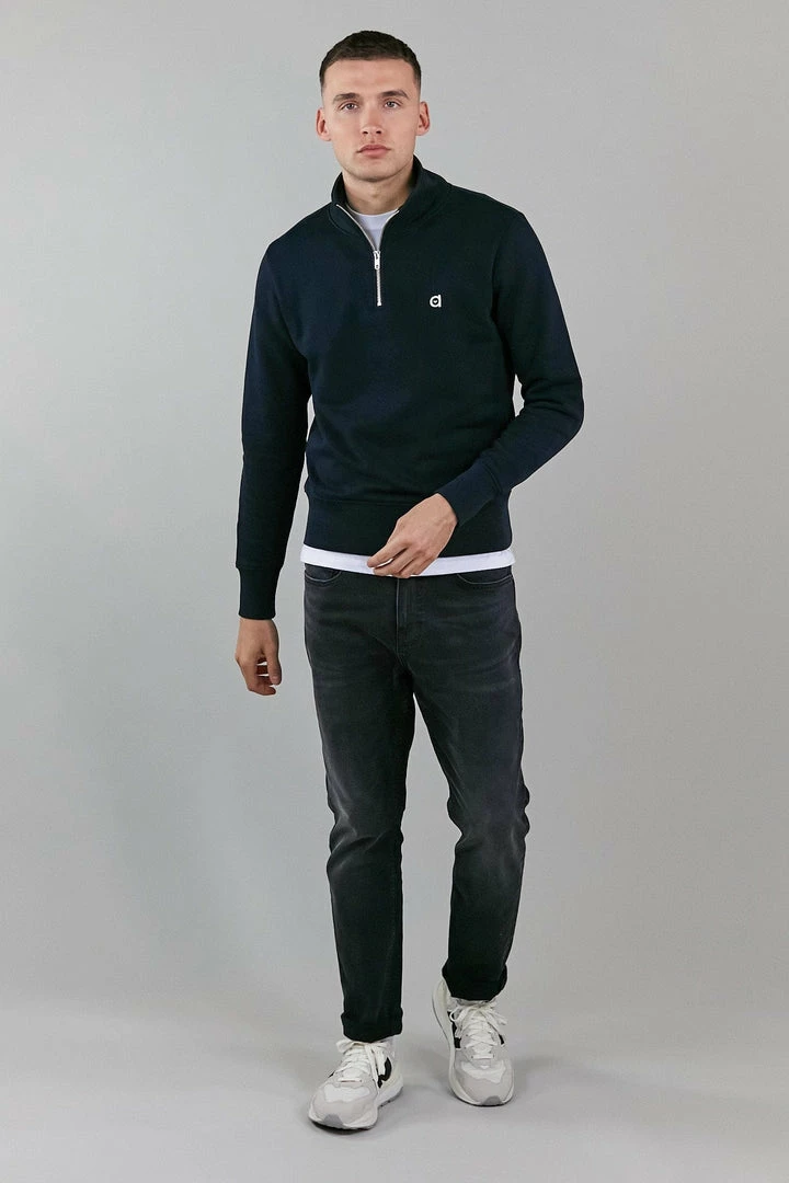 A half zip or quarter zip? Call it what you like, but it has a little zip. Soft touch on the inside, this half zip sweatshirt will be your partner’s favourite item of yours*.