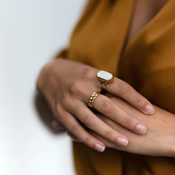 Let the Nina ring shine on it’s own or feature it with multiple rings. Crafted from recycled sterling silver with 18ct gold plating.
