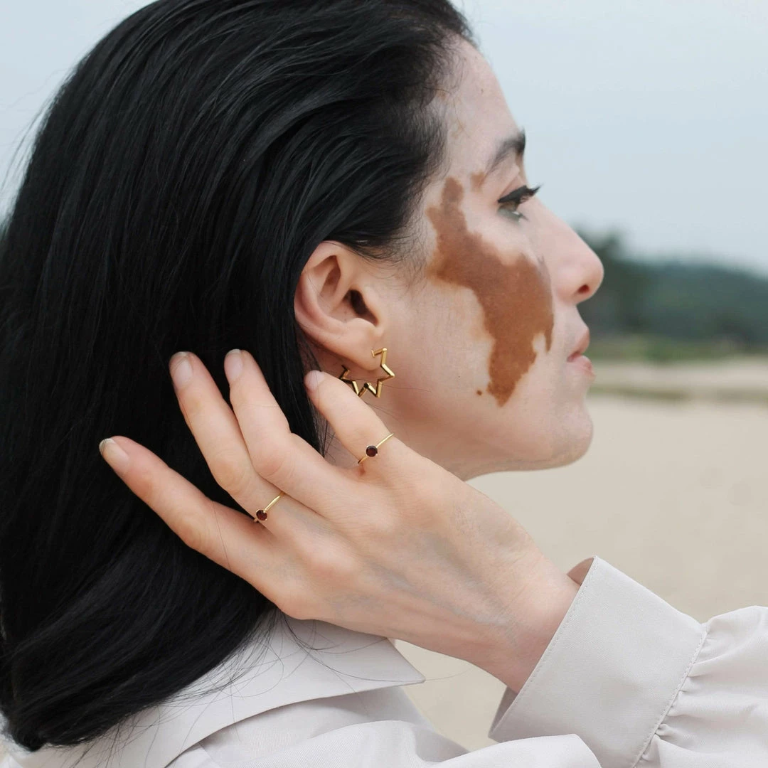 Rani, a Sanskrit female name meaning ‘Queen.’ Bold, but lightweight star hoops made from recycled 925 sterling silver and dipped into a gold bath for the perfect forever finish. Â