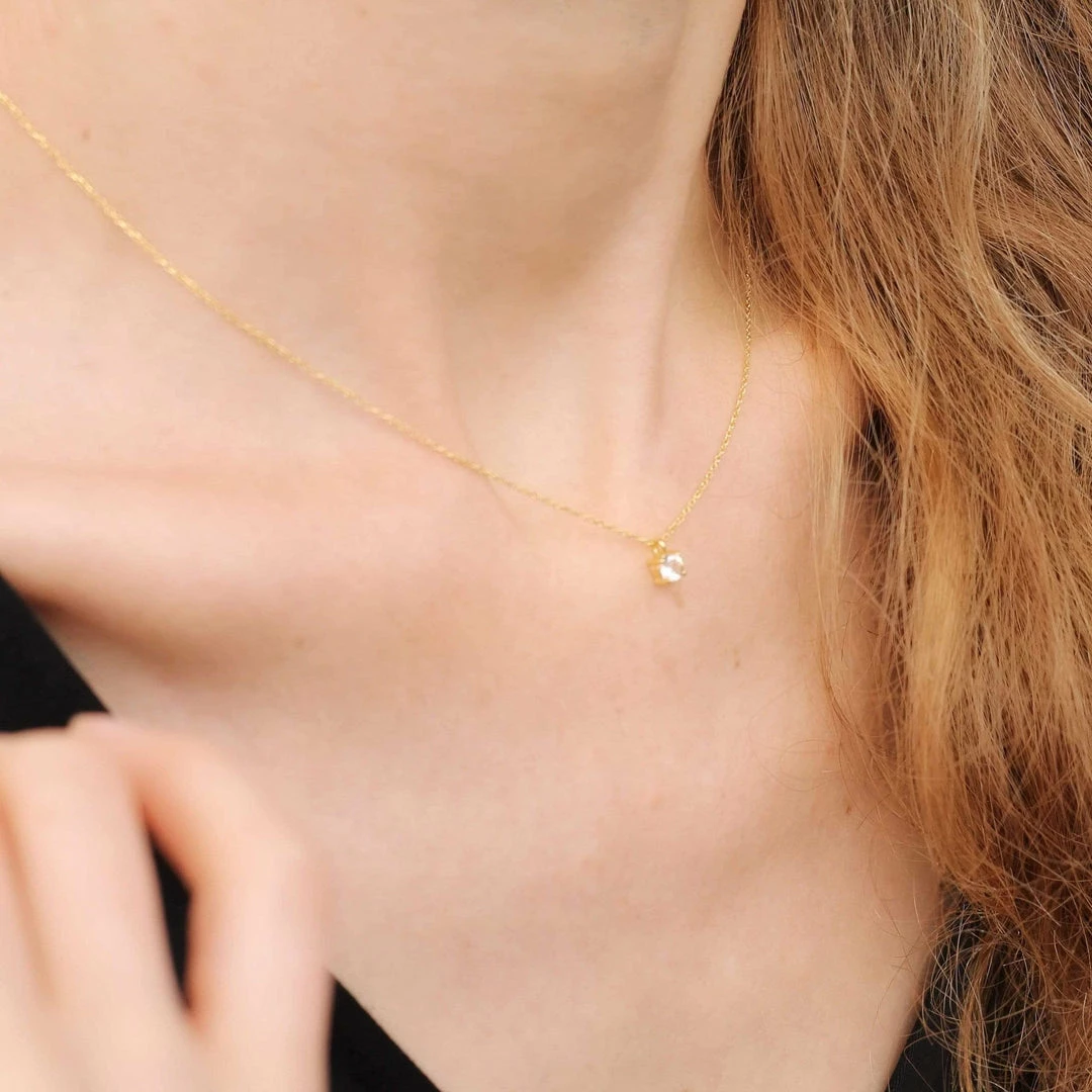 Salma, an instantly beautiful necklace to go with any style. This piece comes with an adjustable chain that can be altered to your desired length. The iridescently radiant White topaz is known as a stone of awareness and truth. Manifest, self love and purify emotions. Â