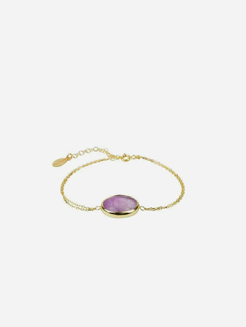 The classic shape of the hand cut gemstone with its pure energy. The Sophia bracelet is made of recycled silver with gold plating featuring a soft Amethyst gemstone. Amethyst stands for trust, intuition & spirituality.