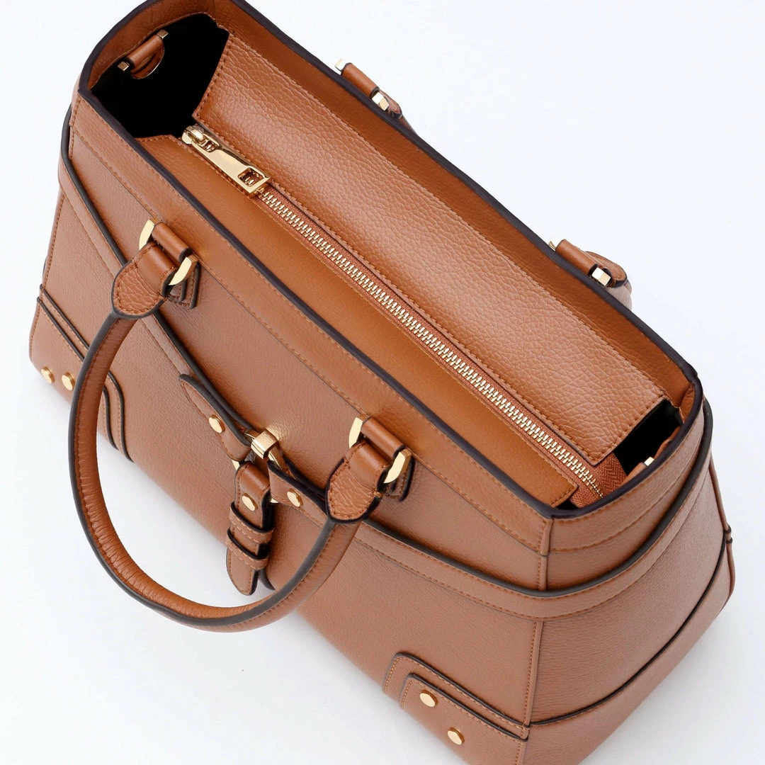 Classic sophistication meets innovation and fashion forward thinking. With attention to detail and a love for quality and ethical fashion, this top-handle bag is crafted by skilled artisans using premium vegan leather, interior lining made from recycled PET bottles and is accented with 24k gold plated hardware. Its remarkable light weight makes it a seamless addition to any occasion, and its bold design makes you stand out wherever you go.