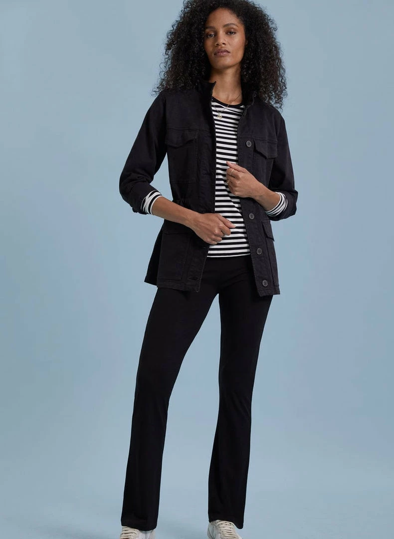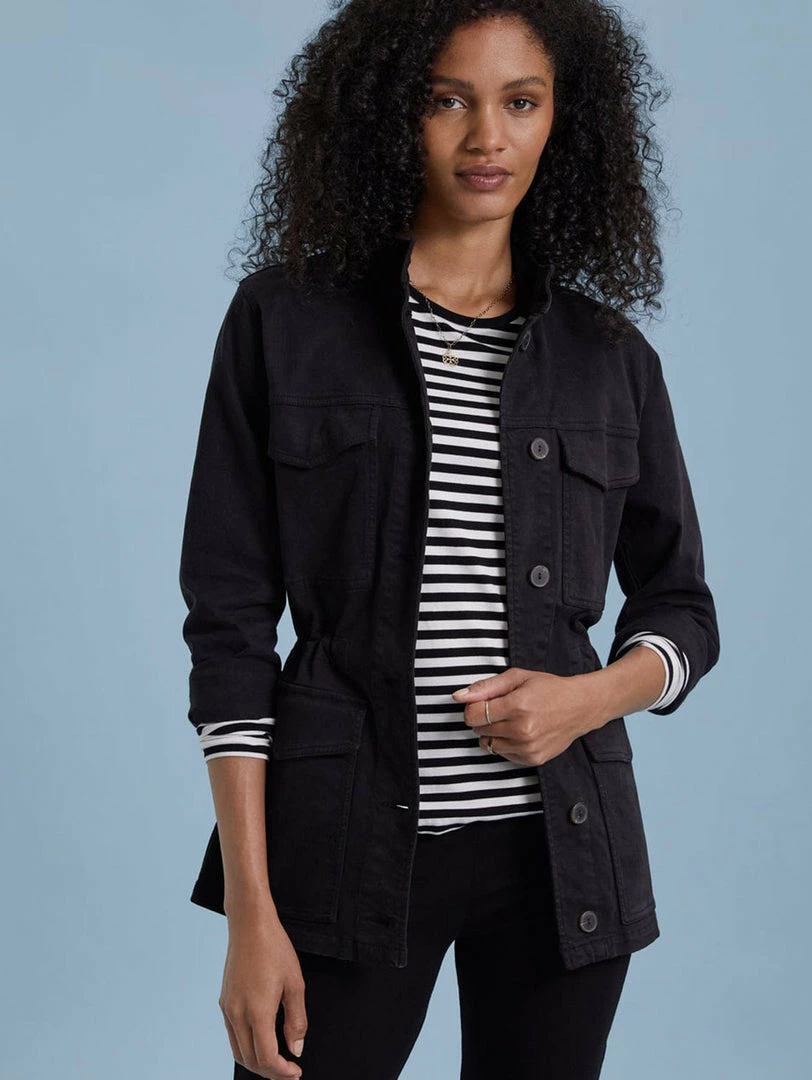 Fashion fact: utility style jackets make the perfect transitional coats. Timeless, effortless and contemporary, the Ashridge comes in a brushed organic cotton. This style comes in a long, below-the-hip line and with a simple stand collar. It also has multiple pockets and an adjustable drawstring waist, so it still has that air of femininity about it.