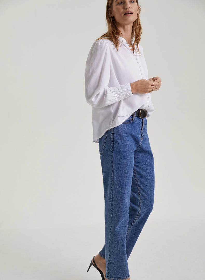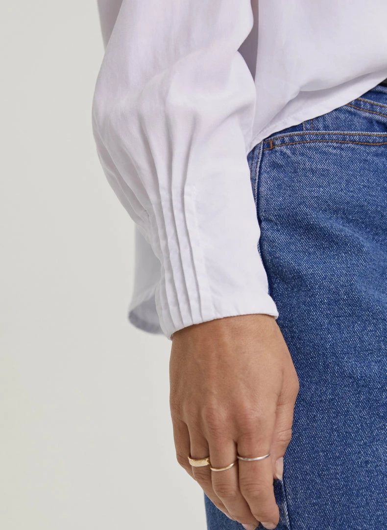 Whether it’s for work or dinner, the Annika will instantly add a touch of feminine elegance to jeans and skirts. It comes with pretty, rouleau loop button fastenings, gathered shoulders and deep cuffs with pleated details on the outer section for that extra detail. It comes in a relaxed fit so it can easily be tucked in.