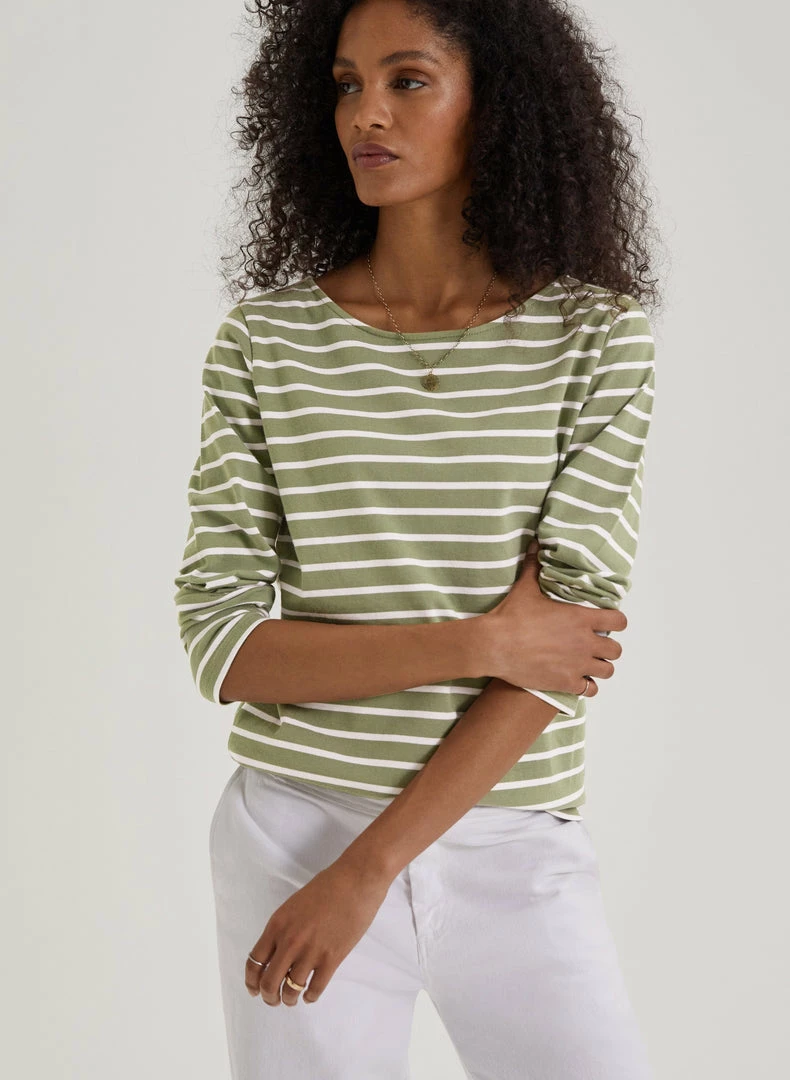 Say ‘bonjour’ to a Breton-inspired top with a twist! The Ashley Top features classic white stripes contrasted with a choice of unique colourways for a fresh, seasonal update. Ready to slip in alongside all your go-to separates (or under your dungarees), it’s made from a heavyweight organic cotton jersey to give it a sense of structure – just like an authentic Breton top would.