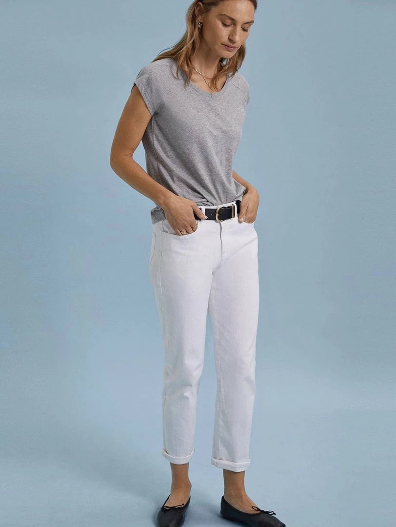 For relaxed, contemporary jeans that flatter, the search ends with the Organic Boyfriend Jean. This best-selling style hugs the hips for a feminine fit and features subtly tapered legs that are slightly cropped. And of course, they are proudly made from eco-conscious organic cotton and come in a variety of washes. For an instant feel-good outfit, style them with… literally anything!