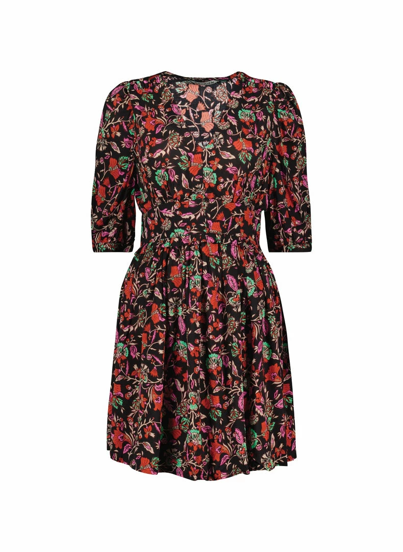 Cosette is a fun and feel-good mini dress that you’ll be wearing all summer long with flat sandals and plimsolls. It’s a super-flattering style thanks to a curved waist panel. Its dark base makes it an easy print to wear, and its shallow v-neck and elbow-length sleeves offset its short hemline.