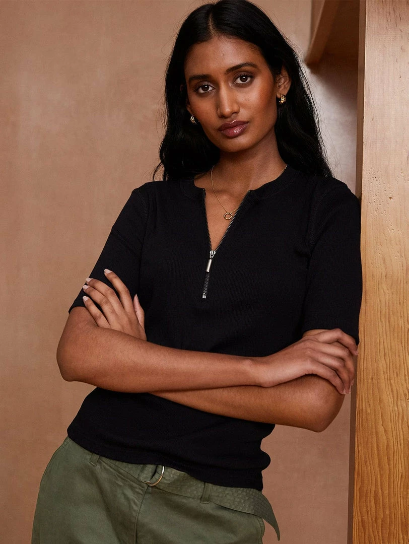Slim-fitting with a half-zip detail, this easy top is Baukjen’s sporty twist on a casual tee. Crafted from soft organic ribbed cotton, it comes with t-shirt length sleeves and can be worn solo or layered under an open shirt with your favourite leggings.