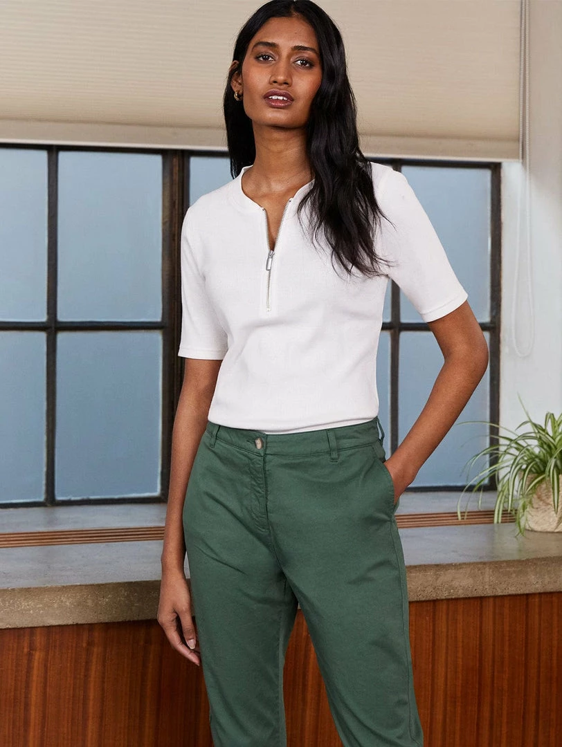 Baukjen Essentials Ribbed Organic Cotton Zip Top | Pure White