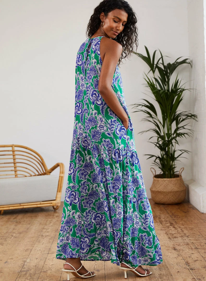The ultimate in wafty summer dressing, Everly is an impactful, ankle-grazing dress that is completely unfitted. A halterneck style with cutaway shoulders, reach for your strapless bra or throw it on over a bikini on holiday. Made from eco-friendly twill fabric adorned with the suitably named ‘Positano print’, have fun dressing it up with sandals and earrings for garden parties back home.