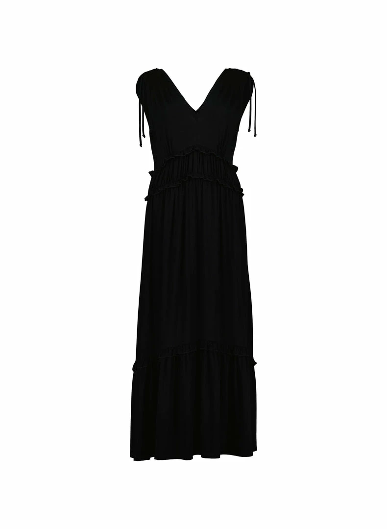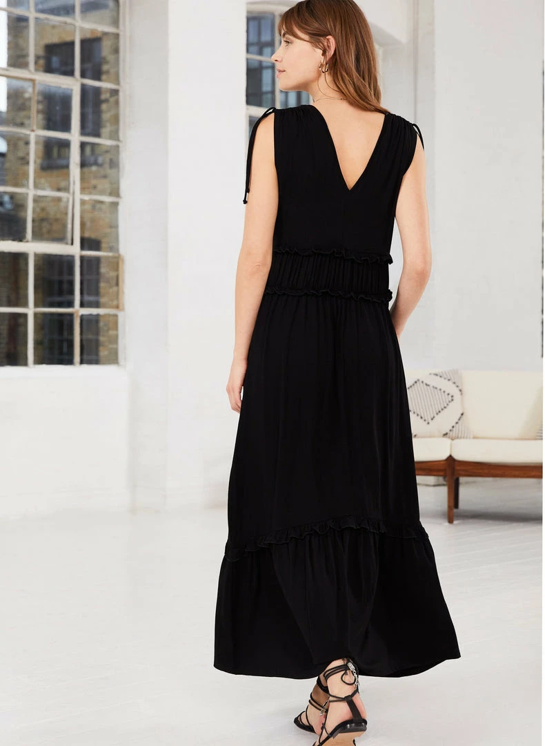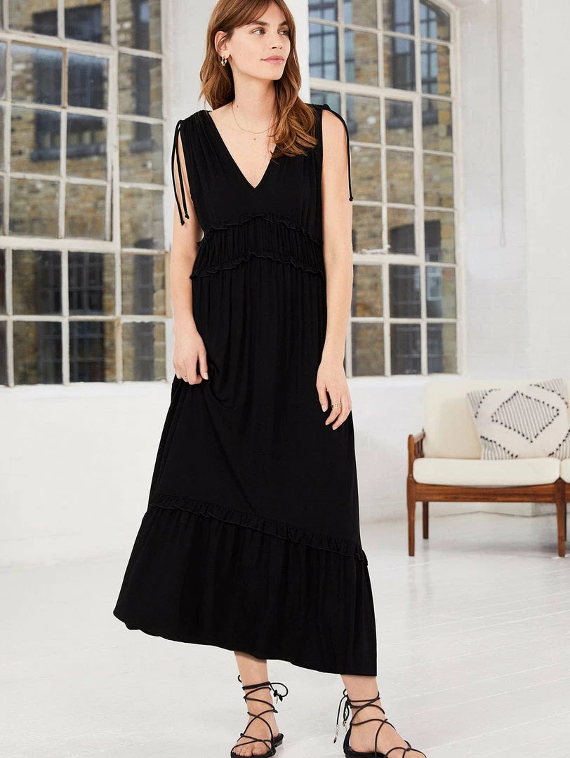Lindsay is a day-to-night jersey dress with a Grecian-inspired twist. It comes with a gathered panel around the waist to create shape and features gathering along the shoulders, which also have a tie detail. Its v-shape neckline flatters and its generous skirt is embellished with a frilled peplum. Wear it to the beach or dress it up with strappy sandals.