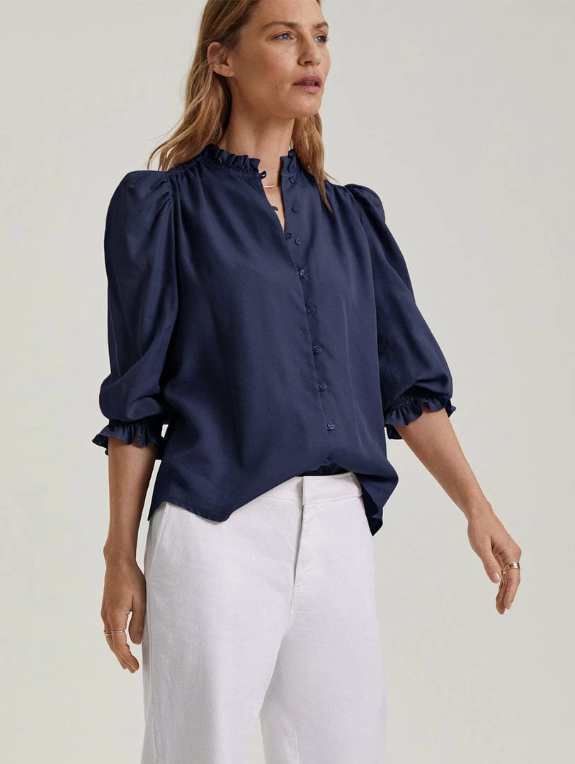Flattering and so feminine, the Melie blouse will bring a touch of whimsy to your video calls! Baukjen’s best-selling blouse shape – with puffed sleeves and shirred cuffs – looks chic with both denim and tailored pants. Crafted from eco-conscious TENCEL™, you’ll love this fabric because it’s cool to the touch and hangs beautifully.