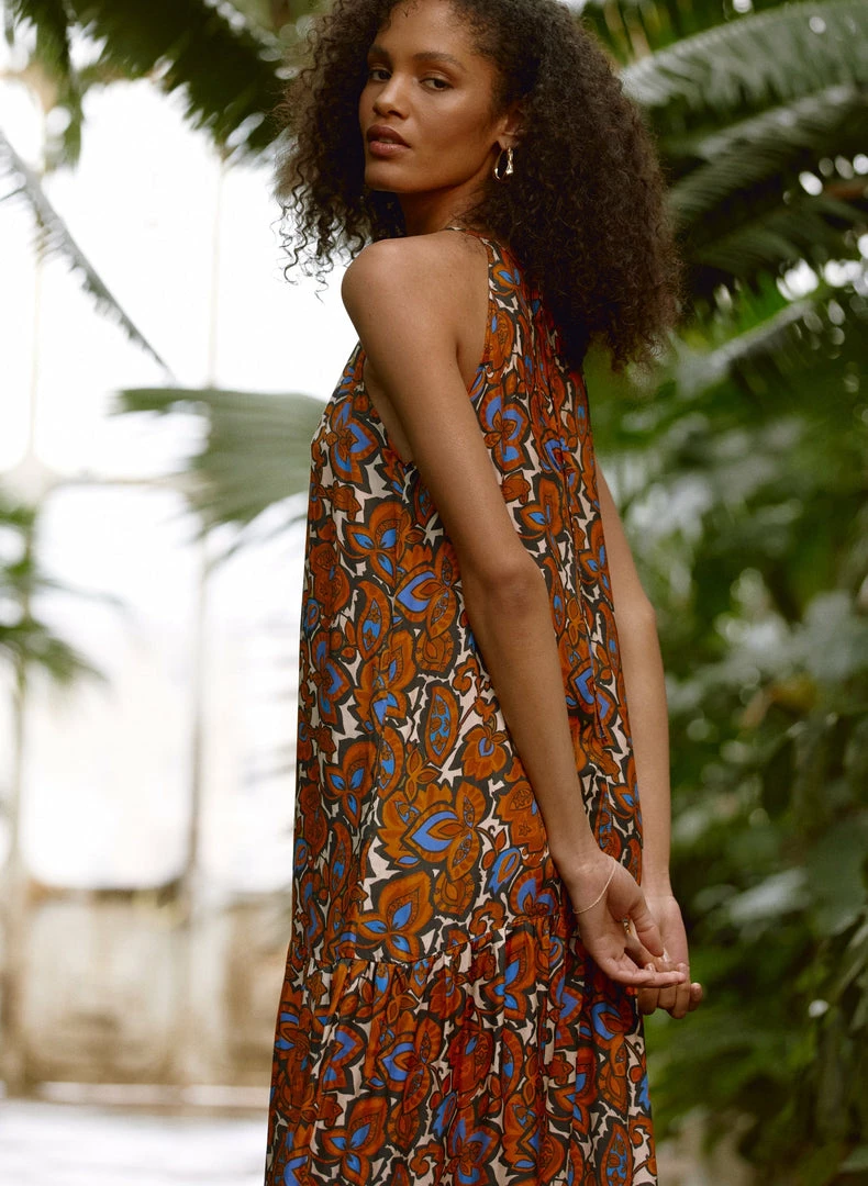Did someone say fabulous? That’s what you’ll be feeling the moment you slip into Mila! This dramatic maxi was made with foreign holidays in mind – style it with strappy sandals and large sunglasses. Made from eco-friendly (and generously wafty) twill fabric adorned with a busy Amalfi print, we love how its colours play on nostalgia. A halterneck style with cutaway shoulders, it simply trapezes out.
