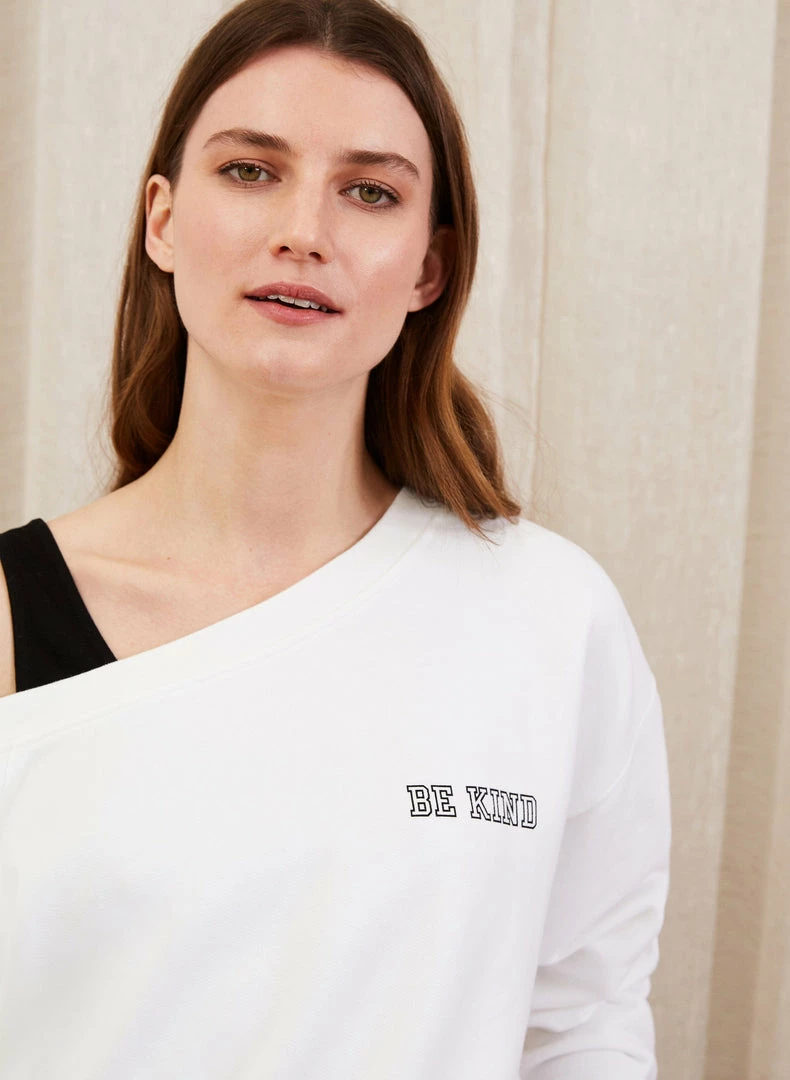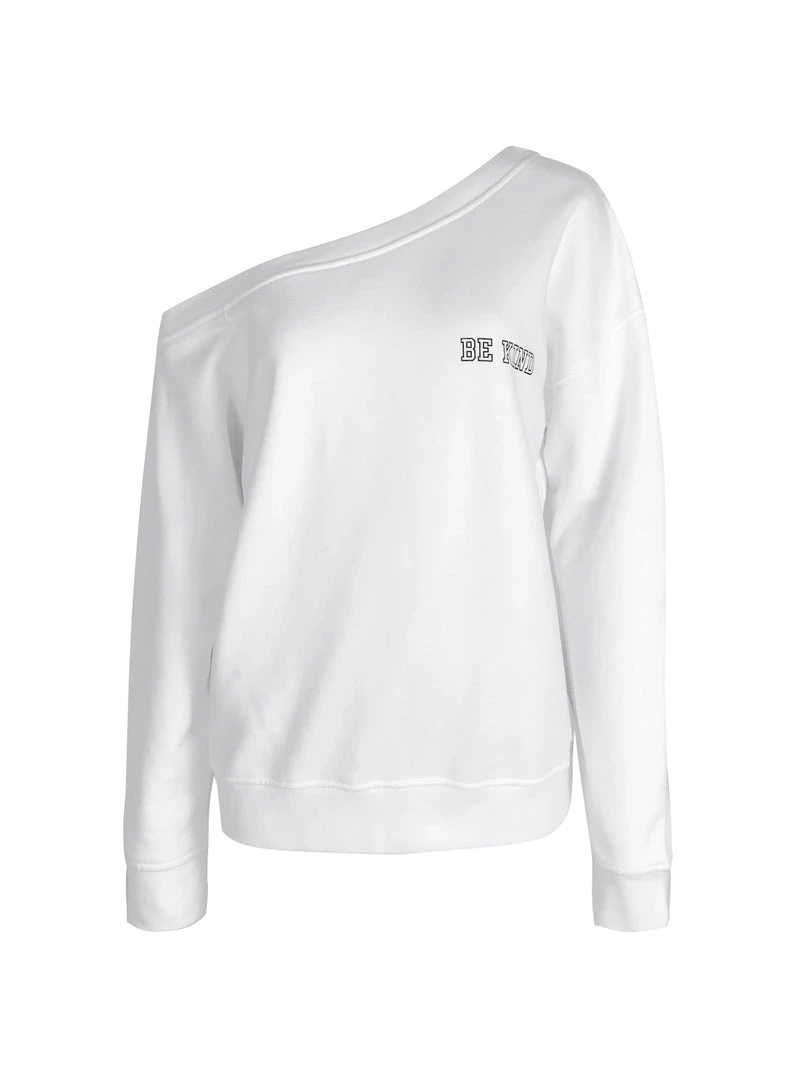 Introducing the top you’ll want to layer over all your activewear and denim this spring! The Morgan is a lightweight organic cotton sweat designed to sit effortlessly on one shoulder. Boasting a relaxed fit in crisp white, Baukjen have embellished it with the slogan ‘Be Kind’ in varsity-inspired lettering for that extra sporty detail.