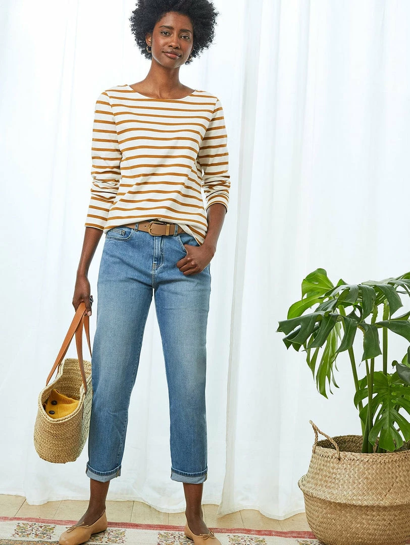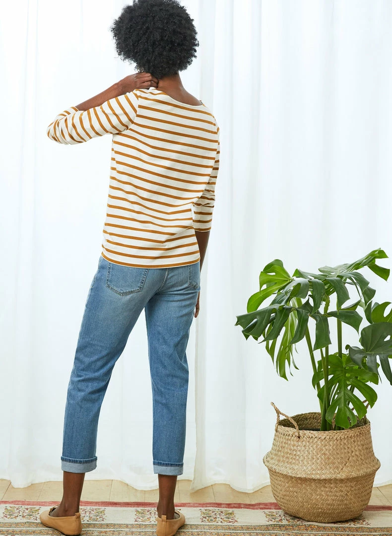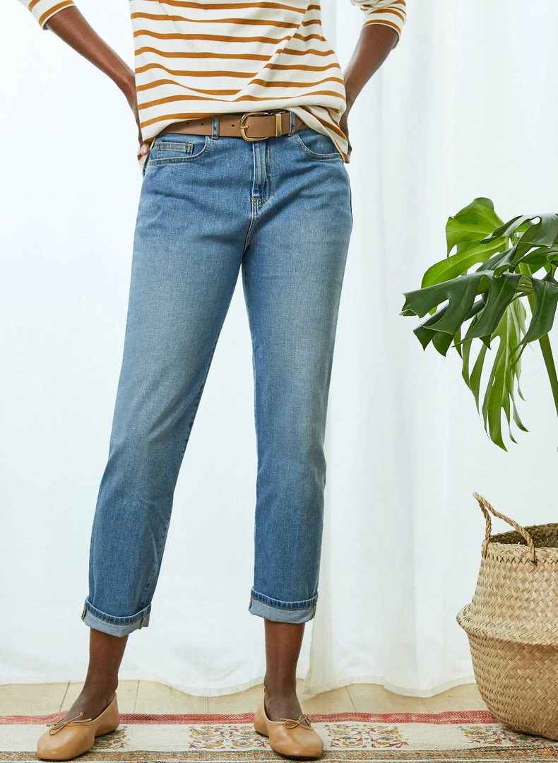 For relaxed, contemporary jeans that flatter, the search ends with the Organic Boyfriend Jean. This best-selling style hugs the hips for a feminine fit and features subtly tapered legs that are slightly cropped. And of course, they are proudly made from eco-conscious organic cotton and come in a variety of washes. For an instant feel-good outfit, style them with… literally anything!