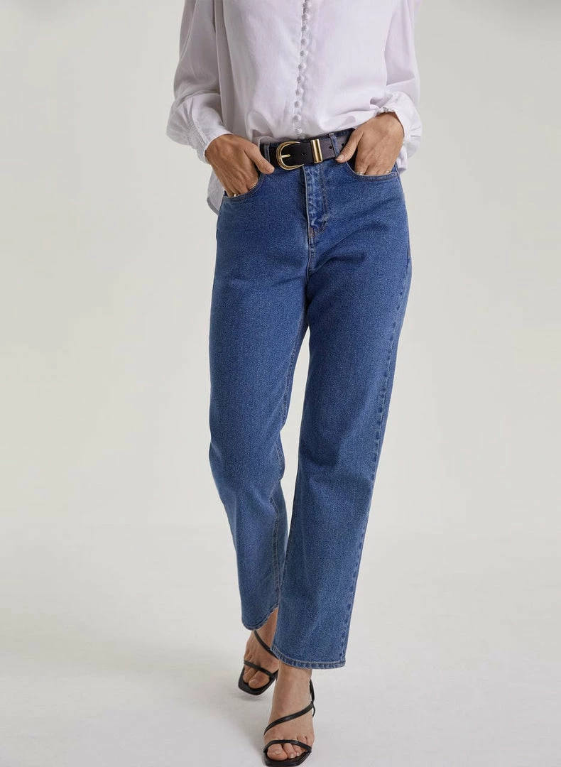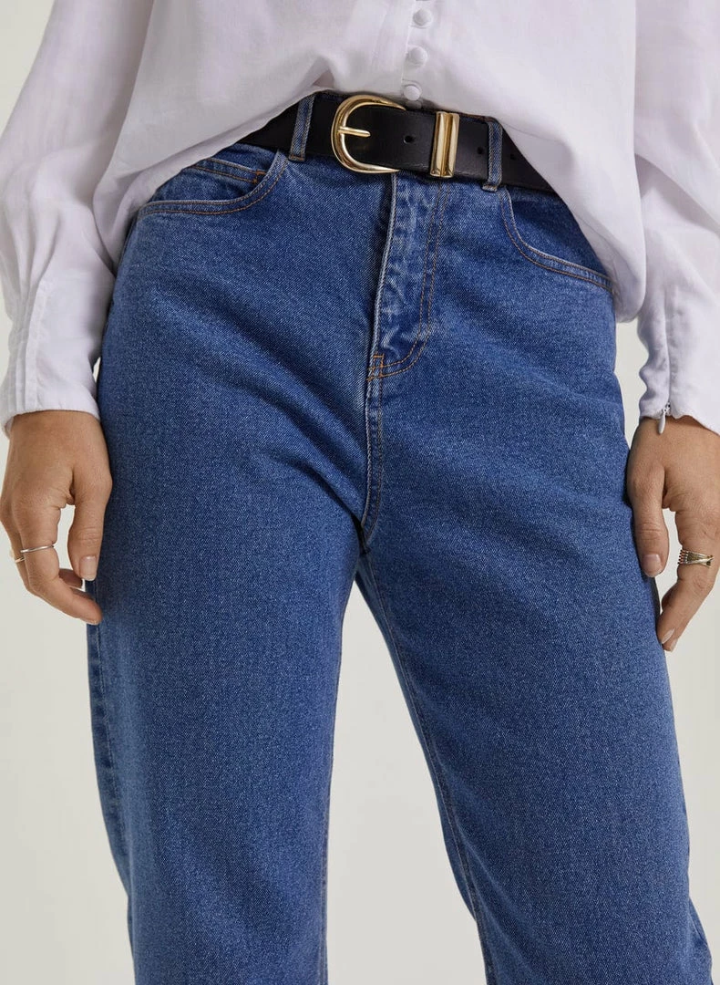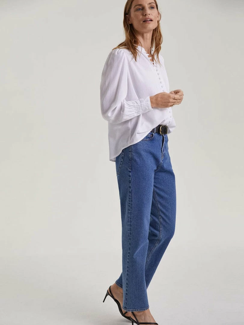 Introducing Baukjen’s latest jeans silhouette: a full-length, straight leg shape which rises to sit on the natural waist. Fitted around the hips, this cut feels contemporary and works in winter too with boots. Naturally, you’re spoilt for choice when it comes to tops: a floral blouse? Breton? Collared sweater? Anything goes! Crafted from organic cotton, it’s a responsible choice too.Â