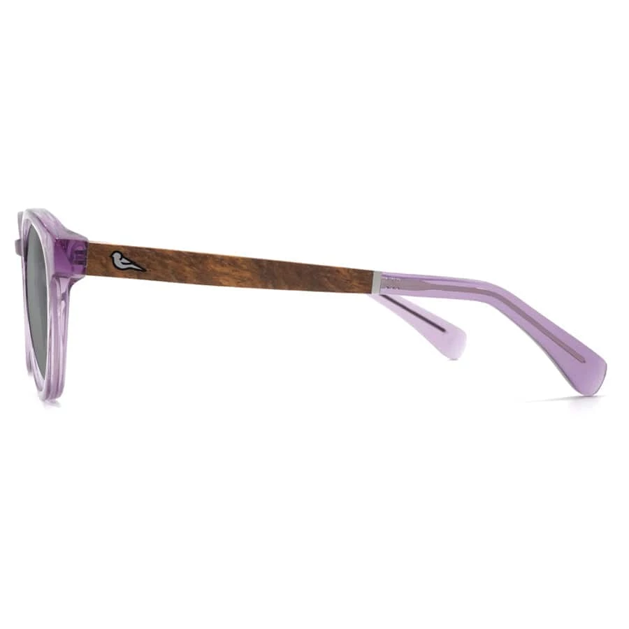 A sustainable bio-acetate frame, carefully finished with sprung hinges and adjustable temple ends to ensure the best fit. This frame is made with Mazzucchelli cellulose bio acetate, a naturally derived material made from wood pulp, providing a biodegradable and eco-friendly alternative to petroleum-based plastics. The wooden temples are made using sustainably certified woods, layered for extra strength and inlaid with the bird motif.