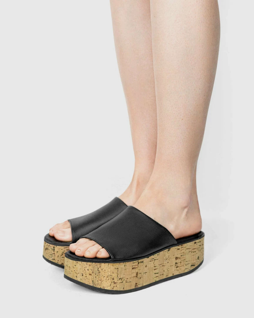 Geigi vegan grape leather and cork platform are the perfect sandals for the summer. They will spice up every look and add comfort in a stylish way for any occasion.Â