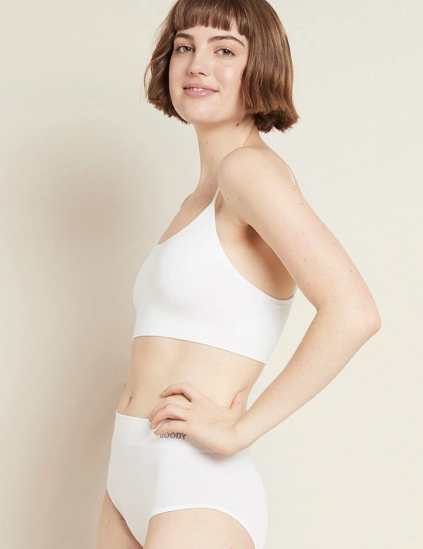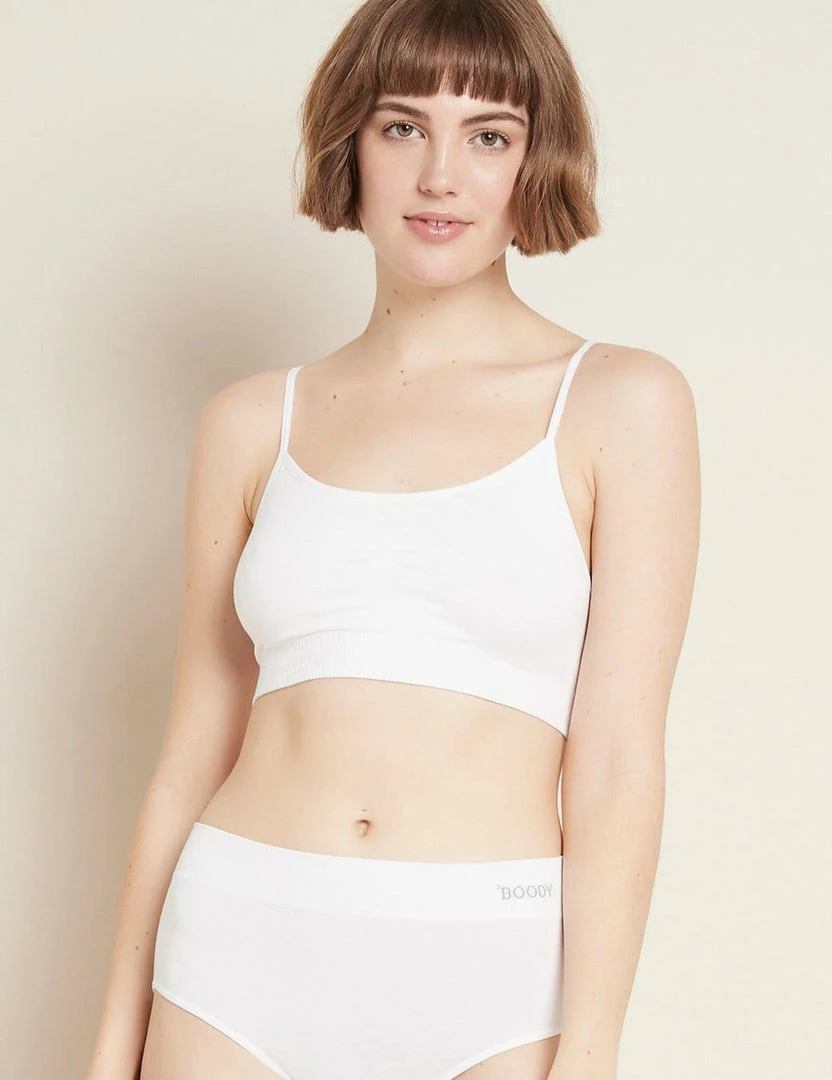 The Boody Cami Bralette’s soft, thin, fabric straps and wide ribbed band provide all-day comfort, perfect to wear under camis and tank tops. The Cami Bralette is wireless, has no padding, is double-layered for extra coverage and provides you with low support. The seam free design means that there is no fabric wastage or off-cuts. Boody have done away with tricky fastenings, clips and hooks and have crafted a comfortable and breathable zero-waste bra that is better for you and the planet.