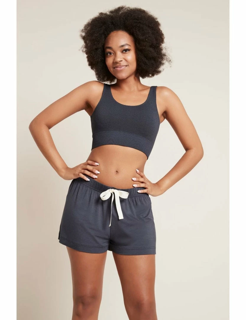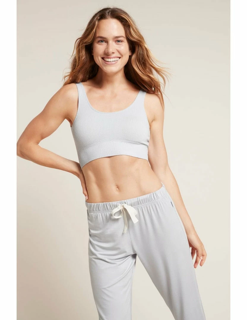 The Ribbed Seamless Bra doubles as a crop top and shows off just the right amount of midriff. Pair with Boody Downtime Trousers for the ultimate lounge around look.