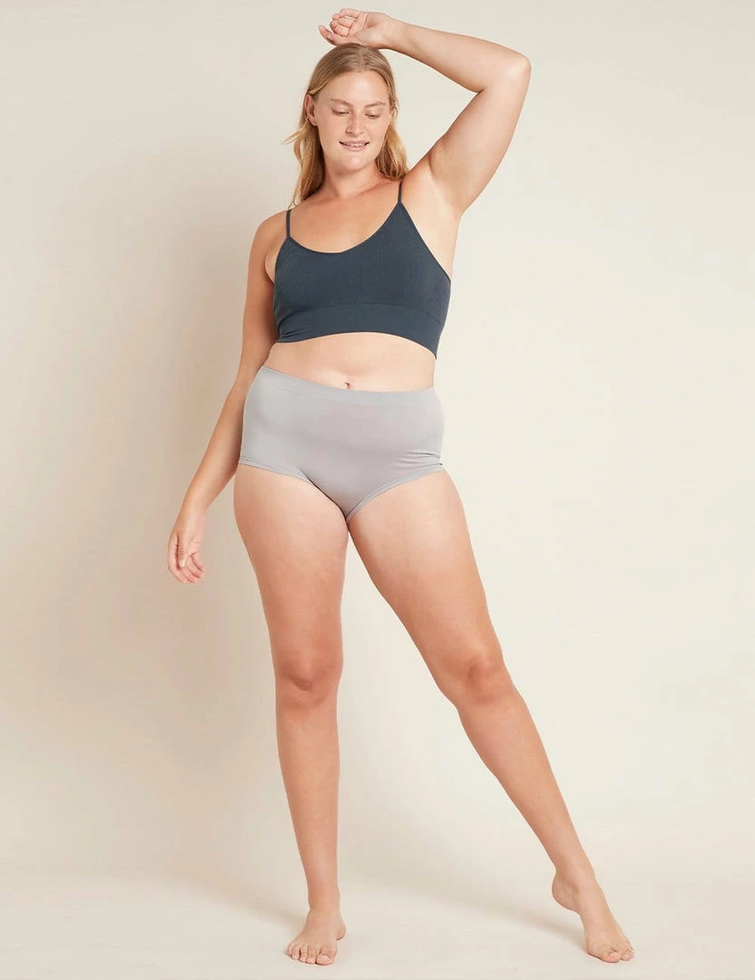 The LYOLYTE™ Full Boyleg Brief is light to wear and soft to touch. It sits high on your waist with a low cut leg opening and has a comfortable flat, seam free, ribbed waistband. Discover Boody’s sustainable LYOLYTE™ Full Boyleg Brief in Storm, Black, Powder Pink and Mist and wear with The LYOLYTE™ Ribbed Low Back Bra. This is Boody’s ‘lytest’ underwear yet. For the comfort seekers. For the mindful. For the planet. This is underwear that cares.