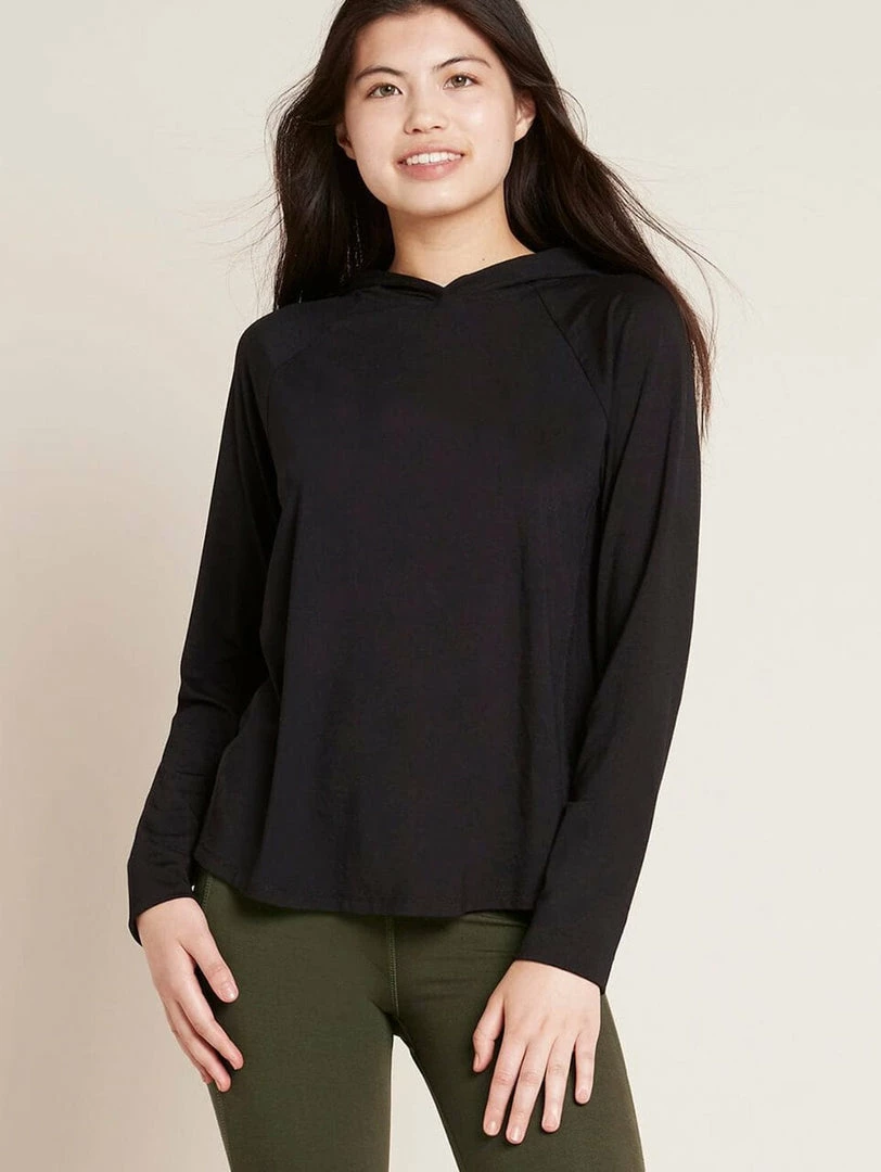 With a balance of sporty and comfort, Boody’s Women’s Long Sleeve Hooded T-Shirt is your go-to before and after making active moves. It features a curved hemline, raglan long sleeves, a hood and side panels. A slim, yet relaxed fit – wear with ease, anywhere and everywhere.