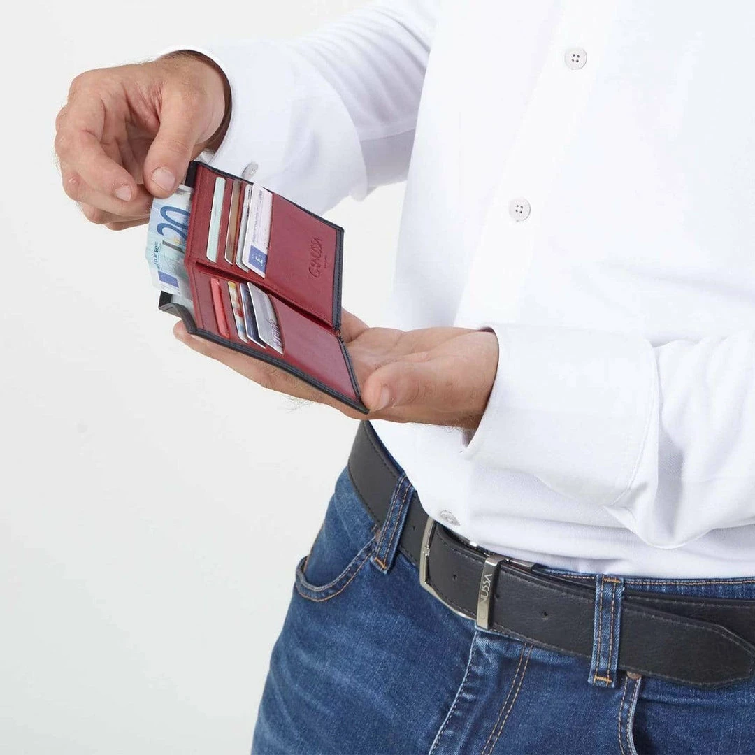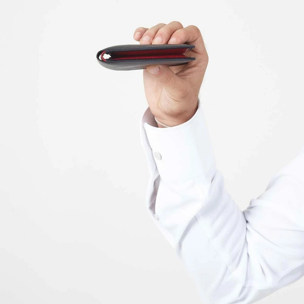 This card wallet has been designed to hold up to 6 cards and notes. In the front, it has the perfect space for the card most used. In the middle it can hold the rest of the cards, still easily accessible. What makes this wallet special is the combination of elegance and functionality, in a high quality and modern style.
