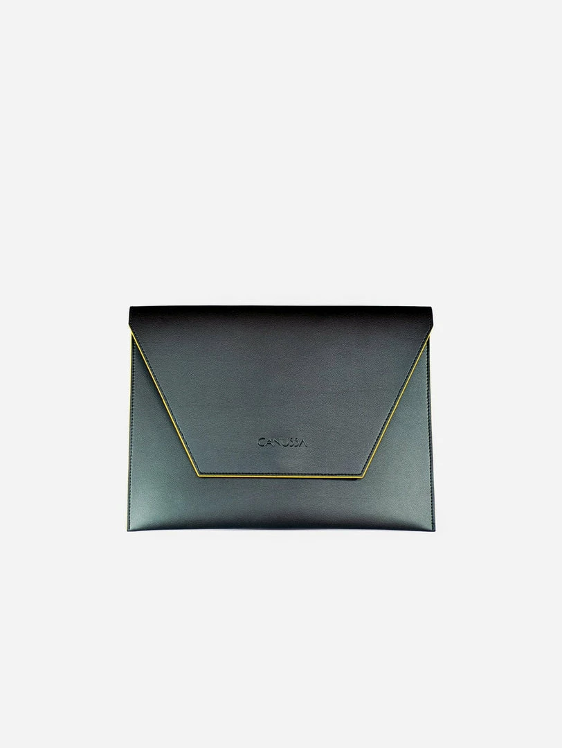 Canussa Briefcases & Laptop Cases Versatile Vegan Leather Laptop Case | Black & Yellow