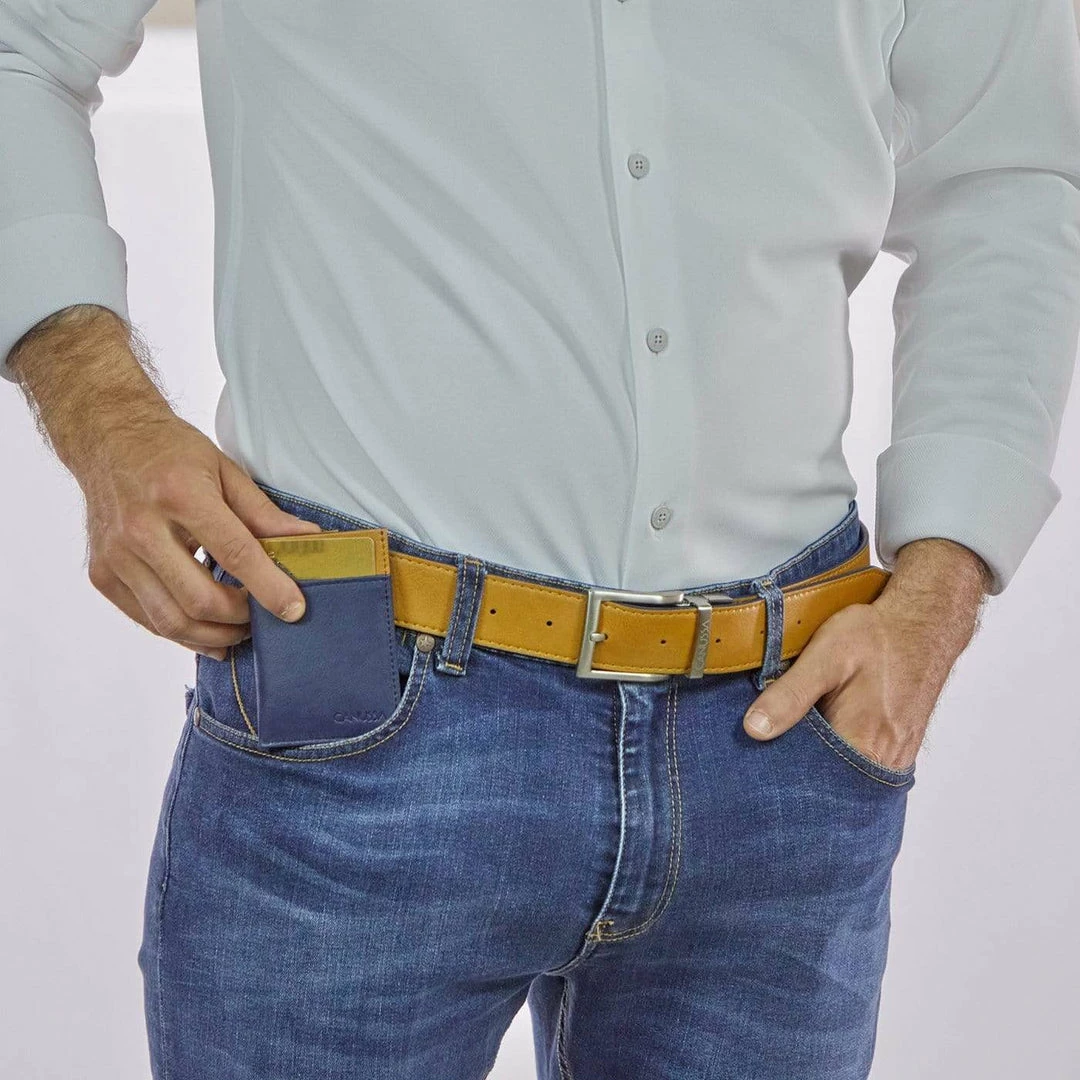 This card wallet has been designed to hold up to 10 cards. In the front, it has the perfect space for the card most used. In the middle it can hold the rest of the cards, still easily accessible. What makes this wallet special is the combination of elegance and functionality, in a high quality and modern style.
