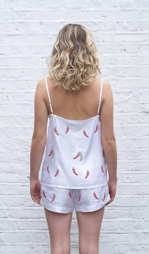 Coming to you in a cami top. Effortlessly flattering with a cowl neckline whilst keeping the elegance as a priority with french seams, they want to make each top fit you so they have added adjustable straps so that you feel your best in your luxurious pyjamas.