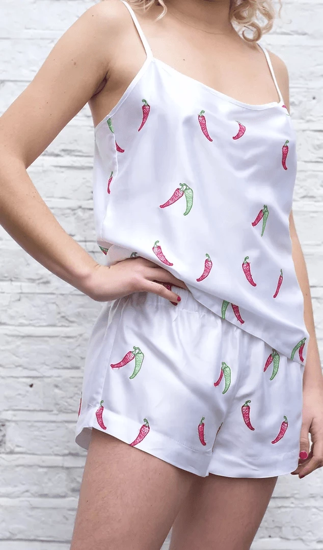 Charlotte Dunn Designs is taking you back to Biarritz with this Edition. The chillis embroidered onto their silky bamboo material are inspired by the Espelette pepper, which Charlotte always sees hanging from bars and restaurants dotted around this magical town.