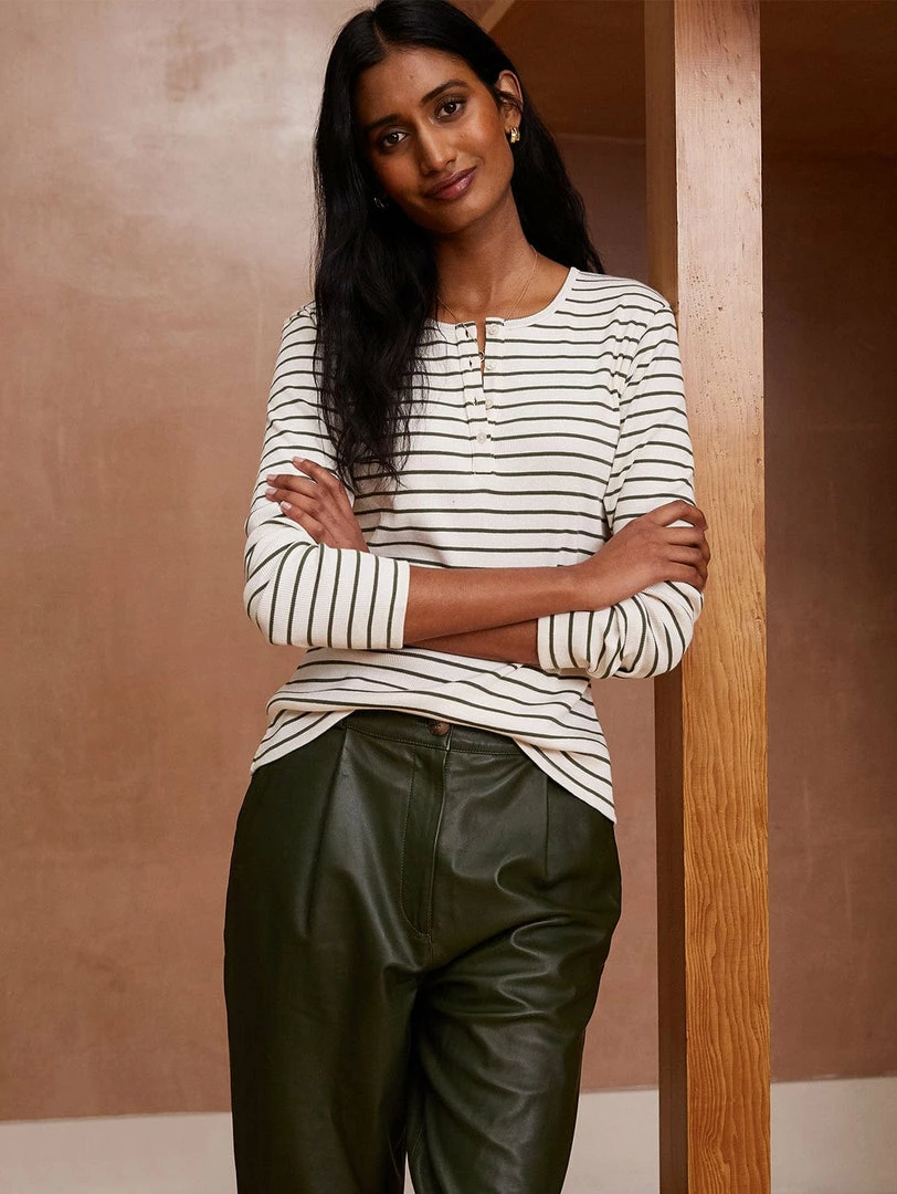 For casual days, your denim will love this new Henley top. Cut for a flattering fit, it’s made from soft organic ribbed cotton and features a simple crew neck with a half-button detail. Available in plain off-white and two striped colourways, there’s a case to welcome all three into your capsule of elevated basics!