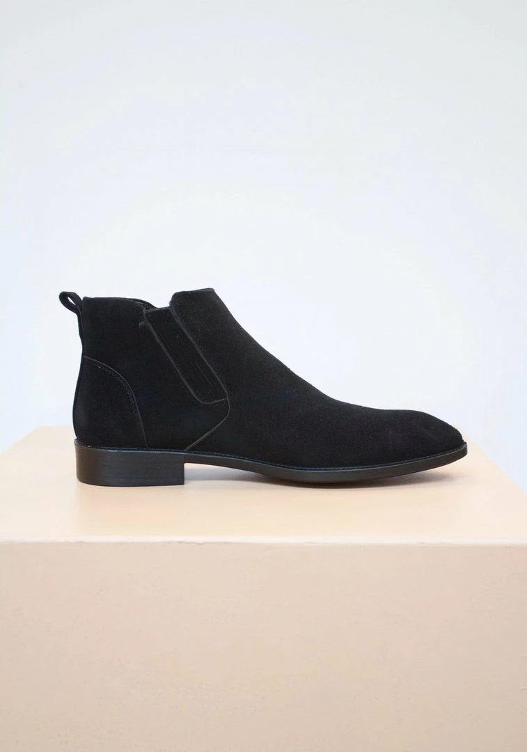 The Lexus lightweight black chelsea boots feature an almond shaped front, a 1 inch heel and crafted in soft black faux suede. The boots have a textured effect and feature elasticated side panels to allow easy pull on and off.