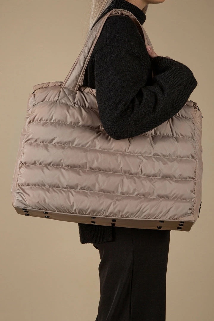The Blenheim is a soft yet strong puffer bag. It is a work bag, gym bag, baby bag, travel bag, overnight bag, weekend bag! Blenheims have all the necessities, like loads of pockets, double zip closure, and protective studs, and they are made mostly from 100% recycled materials. The inside is lined with super soft faux-fur that looks and feels stunning! No-one else will be carrying a bag as cool as this one, we promise.