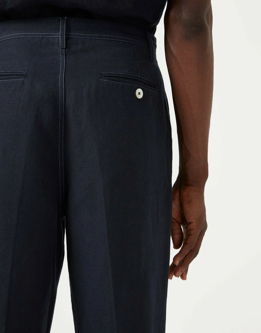 New to Cut & Pin these trousers are the perfect summer companion, designed in a cotton/linen blend and slightly laundered for a relaxed look and cropped at the ankle. Inspired by traditional men’s tailoring these trousers have all the design hallmarks of a wardrobe classic. Perfect worn with your favourite trainers or super smart loafer.