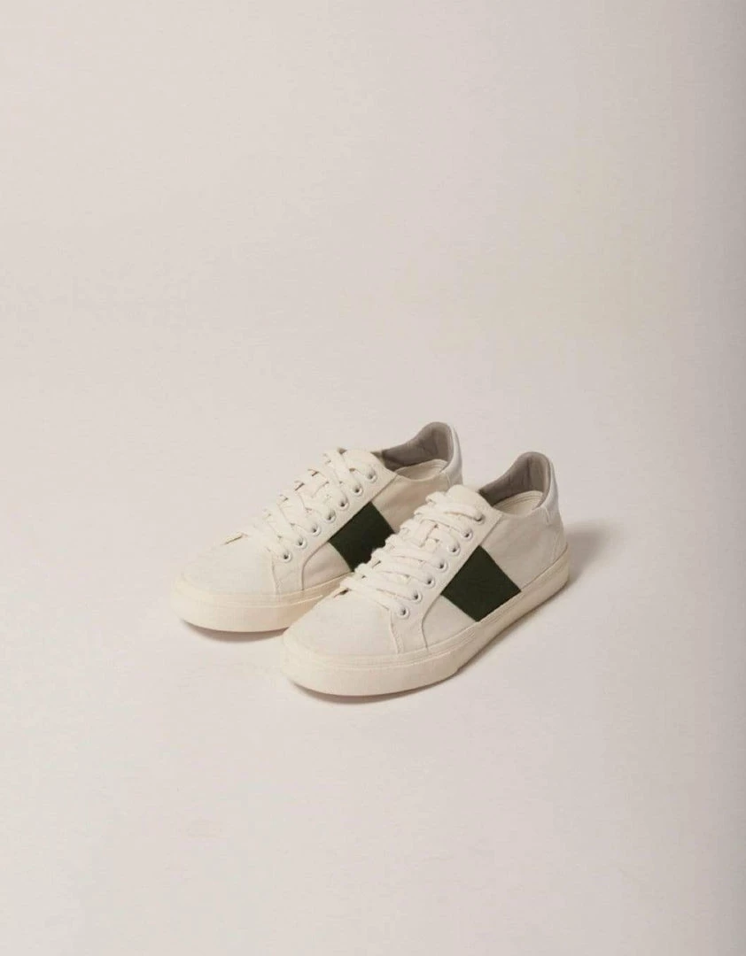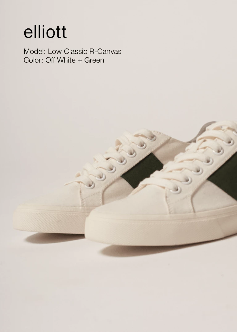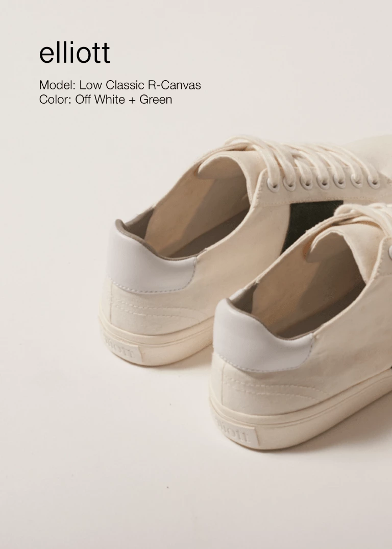 Opting for a slash of elliott green against a classic white aesthetic silhouette constructed from breathable recycled canvas.