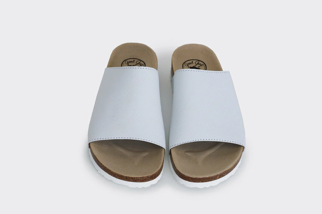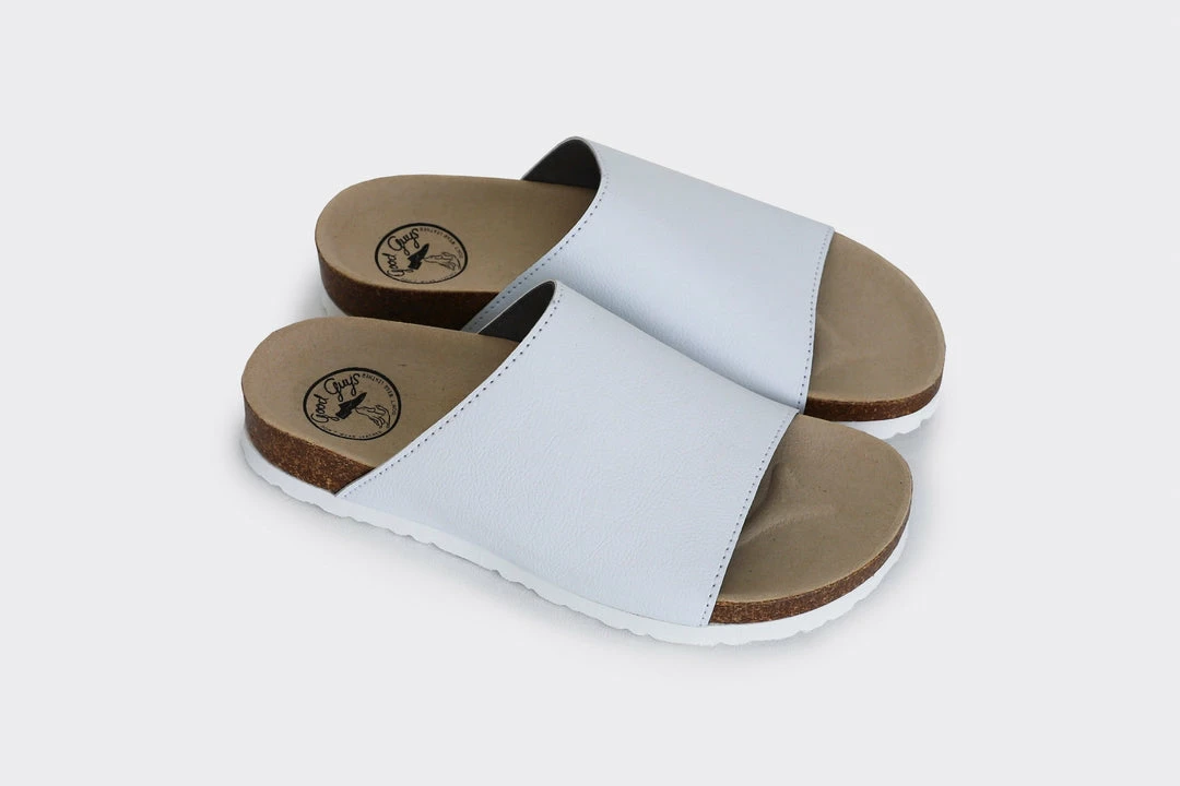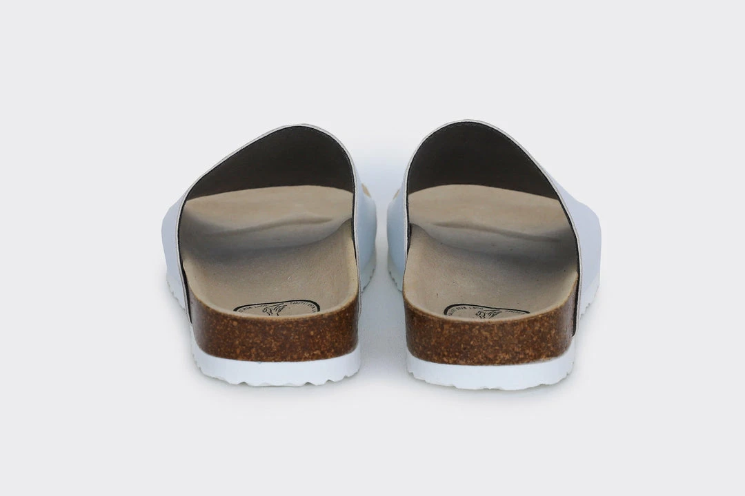 The Jenny in white is a fun take on classic slide-on sandals. Made of the award wining, innovative and eco-friendly Appleskin™, which is an alternative to leather made with 40% apple waste. The Jenny has a wide fit and is a very comfortable, perfect for the summer barefoot or to wear mid-season with an additional pair of cute socks.