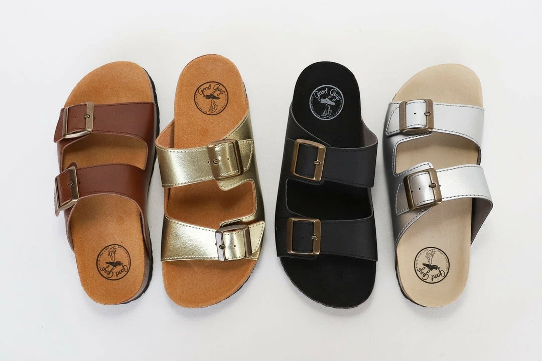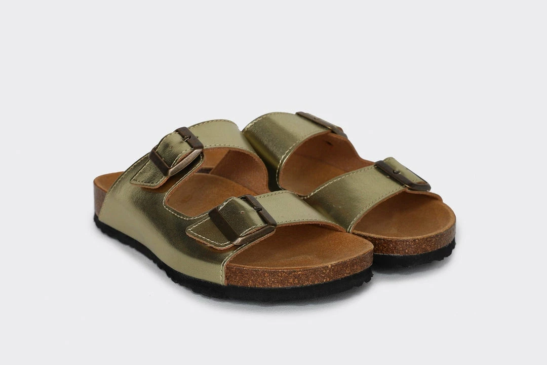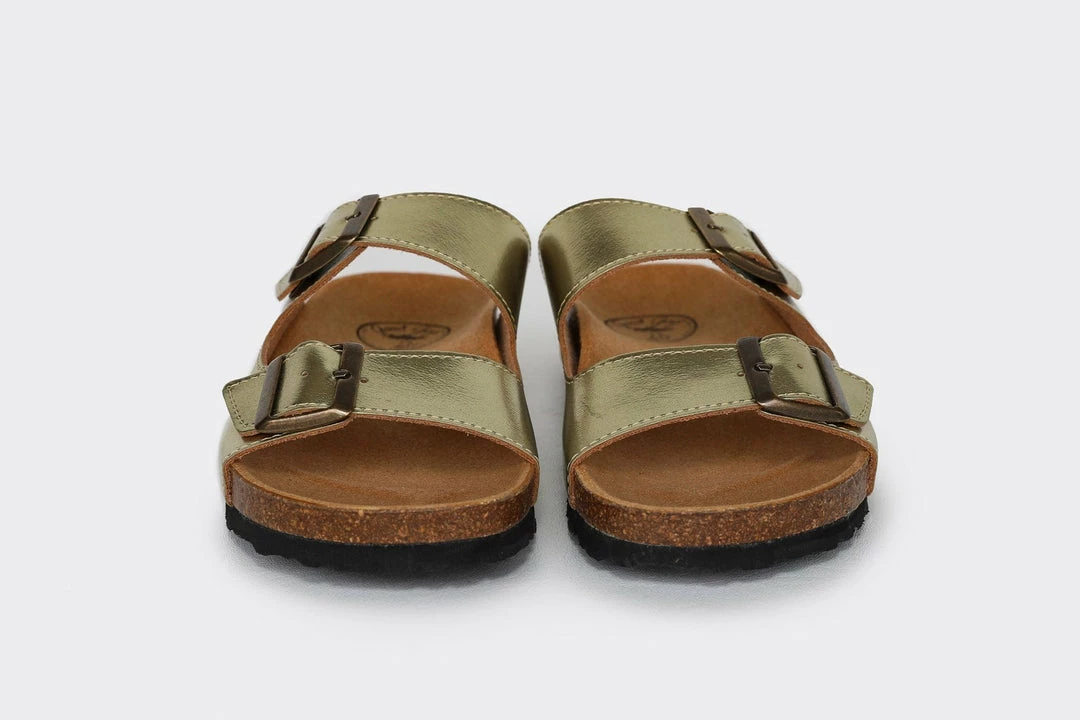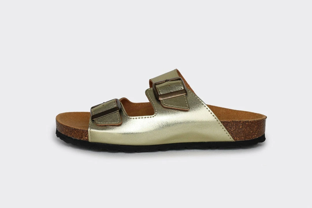 The Juno in gold is the ray of sunshine we need this summer. The Juno is made from smooth microfibre, an alternative to leather and features two buckled straps and an ultra-comfortable contoured footbed. This sandal has a wide fit and a breathable microfibre lining, perfect for the summer barefoot or to wear mid-season with an additional pair of cute socks.