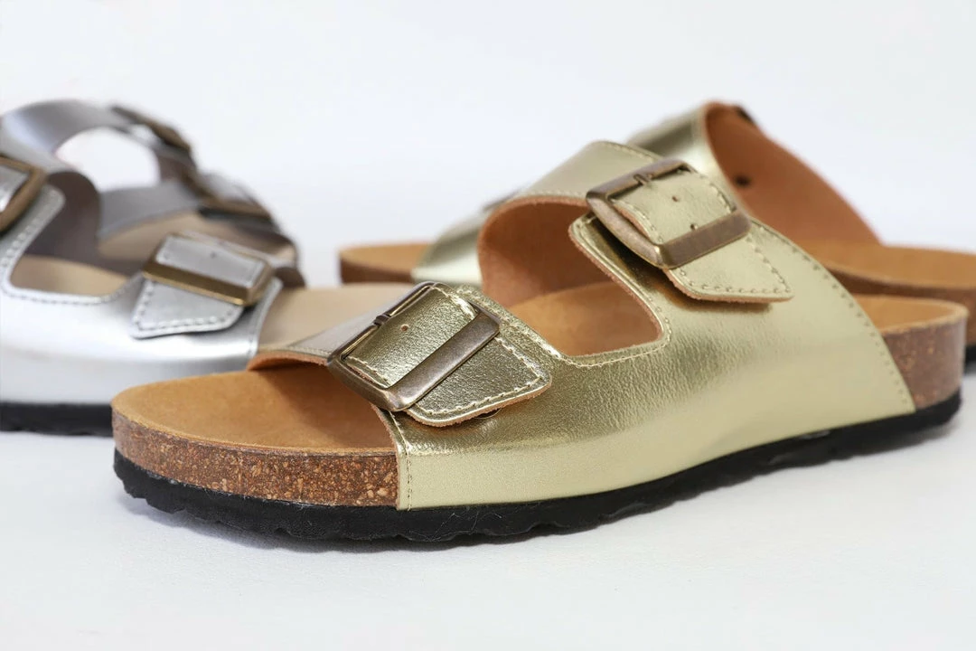 - Cork footbed covered with microfibre