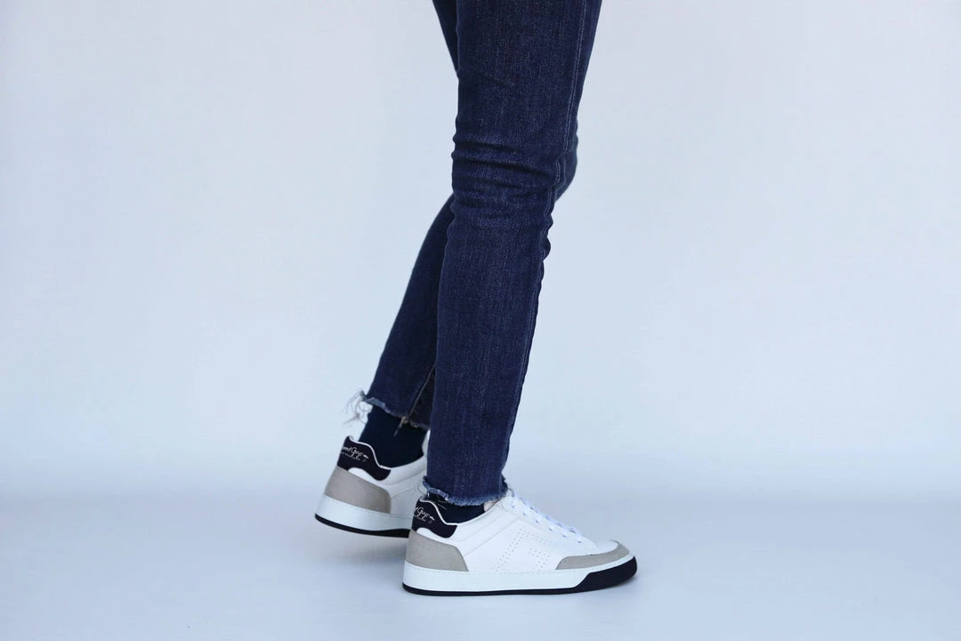 Kurt vegan tennis trainers are made of vegan leather upper with vegan suede details on the back, microfiber lining, and a two-tone rubber sole. This is an urban, classic, super stylish sneakers to wear every day.