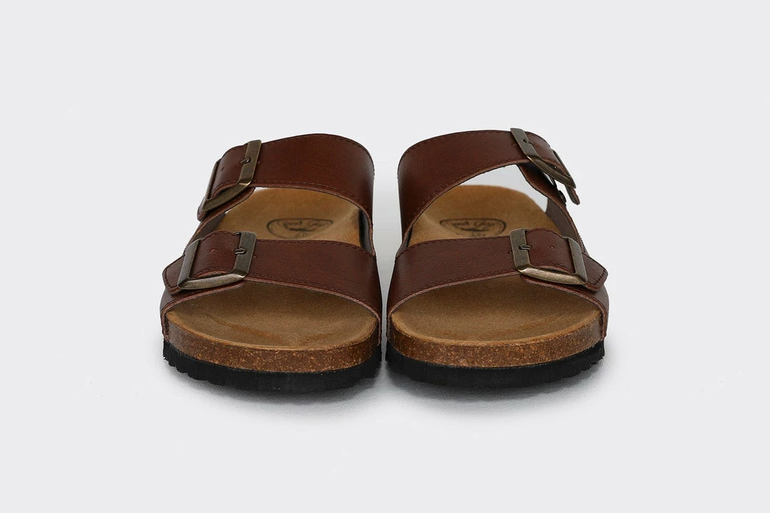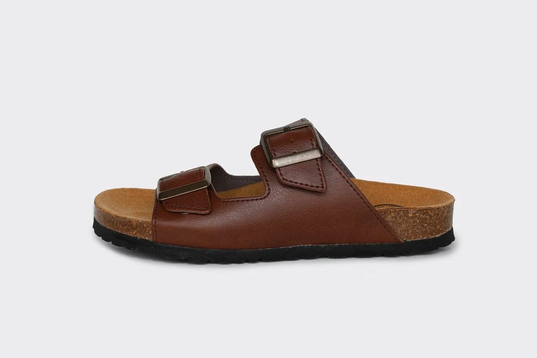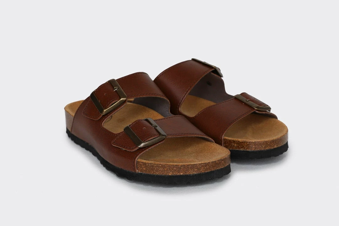 The Juno in Brown is the perfect classic slide-on sandals for this summer. The Juno is made from smooth microfibre, an alternative to leather and features two buckled straps and an ultra-comfortable contoured footbed. This sandal has a wide fit and a breathable microfibre lining, perfect for the summer barefoot or to wear mid-season with an additional pair of cute socks.