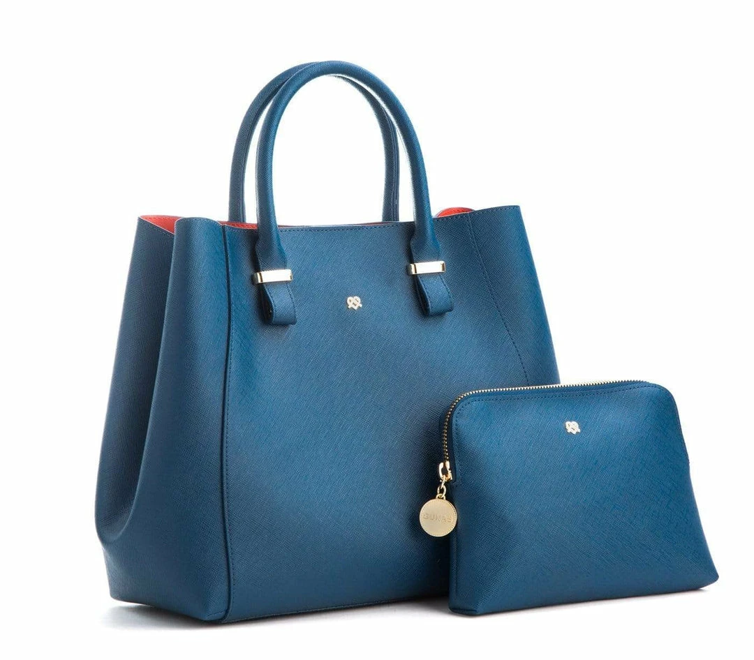 Poised, polished, and powerful, the Gunas girl carrying the Jane Satchel from their Premium Collection, is the obvious boss of her world. The Jane is fully appointed with every luxury handbag amenity your heart desires, including a removable and adjustable cross-body strap as well as their signature gleaming hardware. Enjoy the added bonus removable make-up bag for your cruelty-free beauty essentials or use it as a mini clutch for when you are on the go. Â