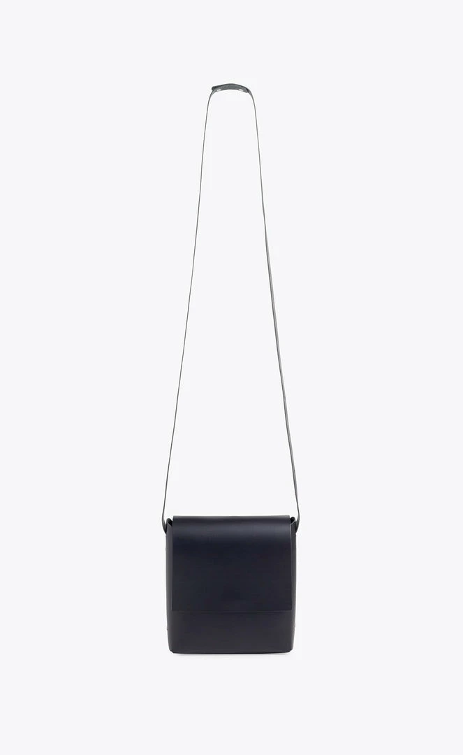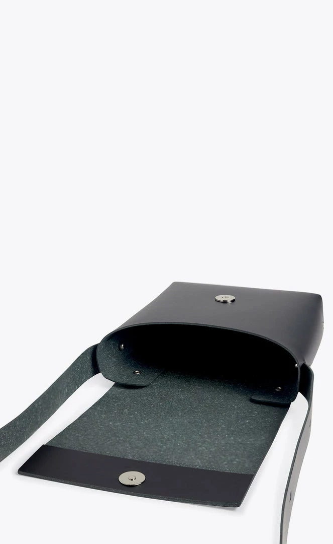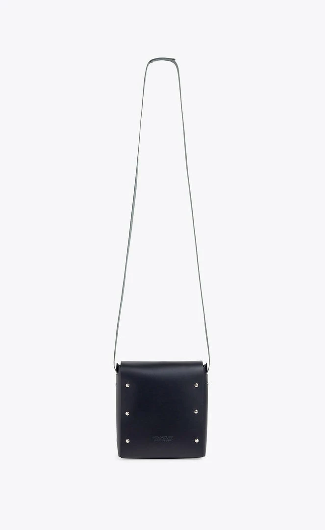The Hemincuff Origami crossbody bag features an adjustable and removable shoulder strap, with silver hardware and a magnetic front flap closure. Additional interchangeable shoulder strap in white. Handcrafted with recycled vegan material, this bag is made using an origami folding technique that does not utilize any stitching.